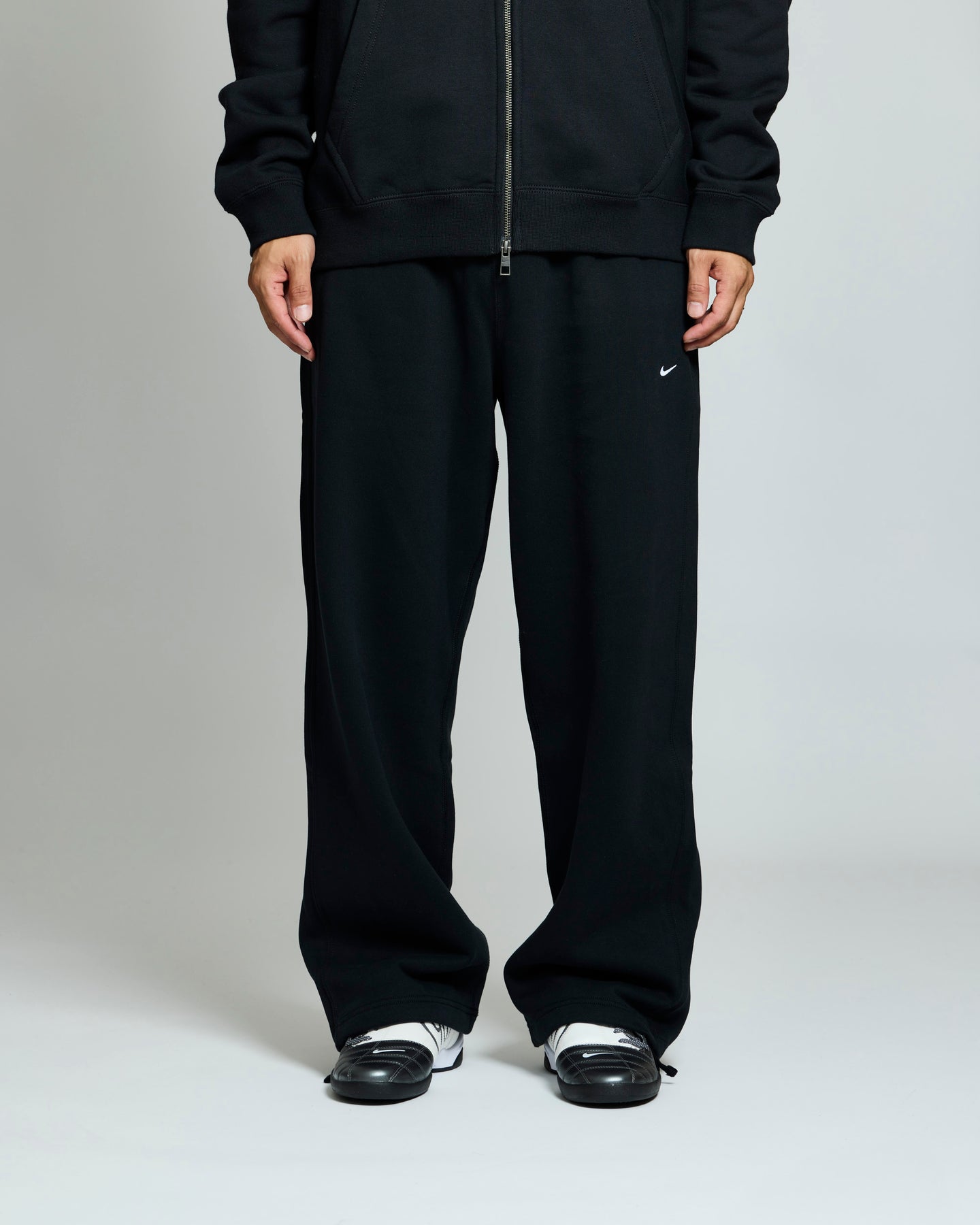 ふんわりとした起毛感のあるフリース素材を用いたリラックスパンツ。ウエストは伸縮性に優れたゴム仕様とドローストリングで調整が可能で、しっかりホールドしつつ快適なフィット感を実現します。ゆったりとしたヒップと太ももから裾にかけてテーパードをかけたシルエットで、だらしなく見えずスマートな印象を保ちます。控えめなスウッシュ刺繍がアクセントとなり、スポーツルーツを感じさせるデザインに。裏起毛の柔らかな質感は室内・屋外どちらでも暖かく快適で、デイリーユースのパンツとしてもアクティブなシーンでも活躍する一本です。