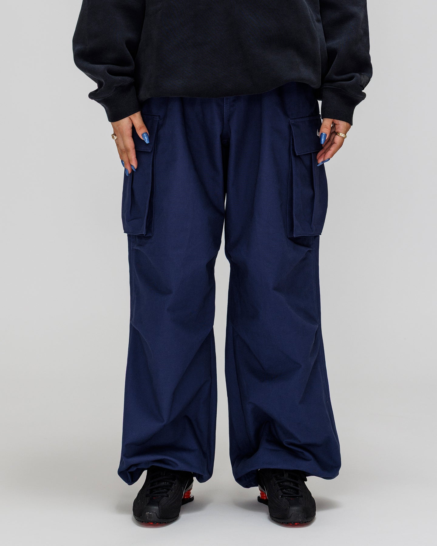 ウエストはバンジーコードとコードロック付きの伸縮バンド仕様。オーバーサイズながら、快適でフィット感のある穿き心地を実現します。裾にもバンジーコードを備えており、シルエットのアレンジも自在です。