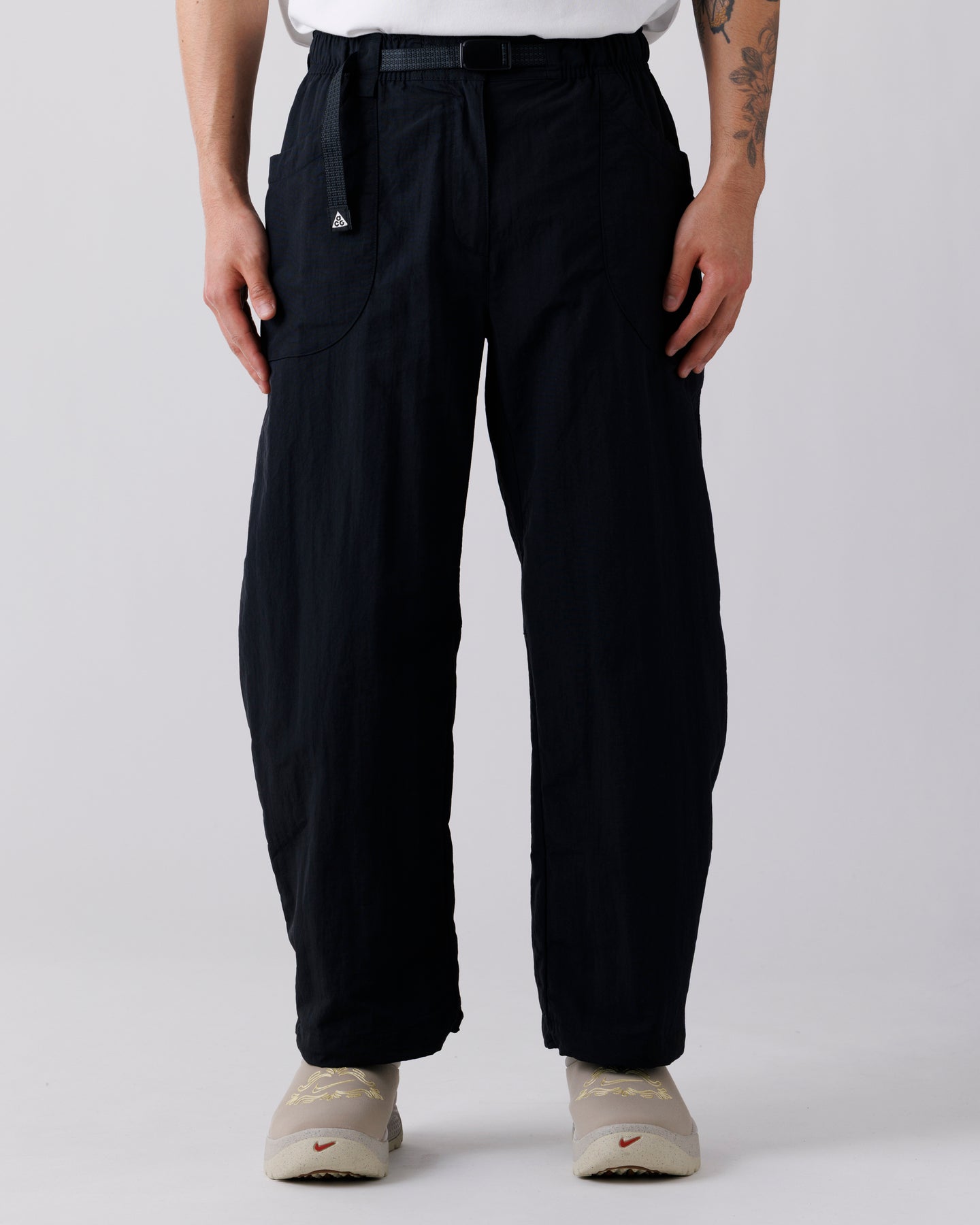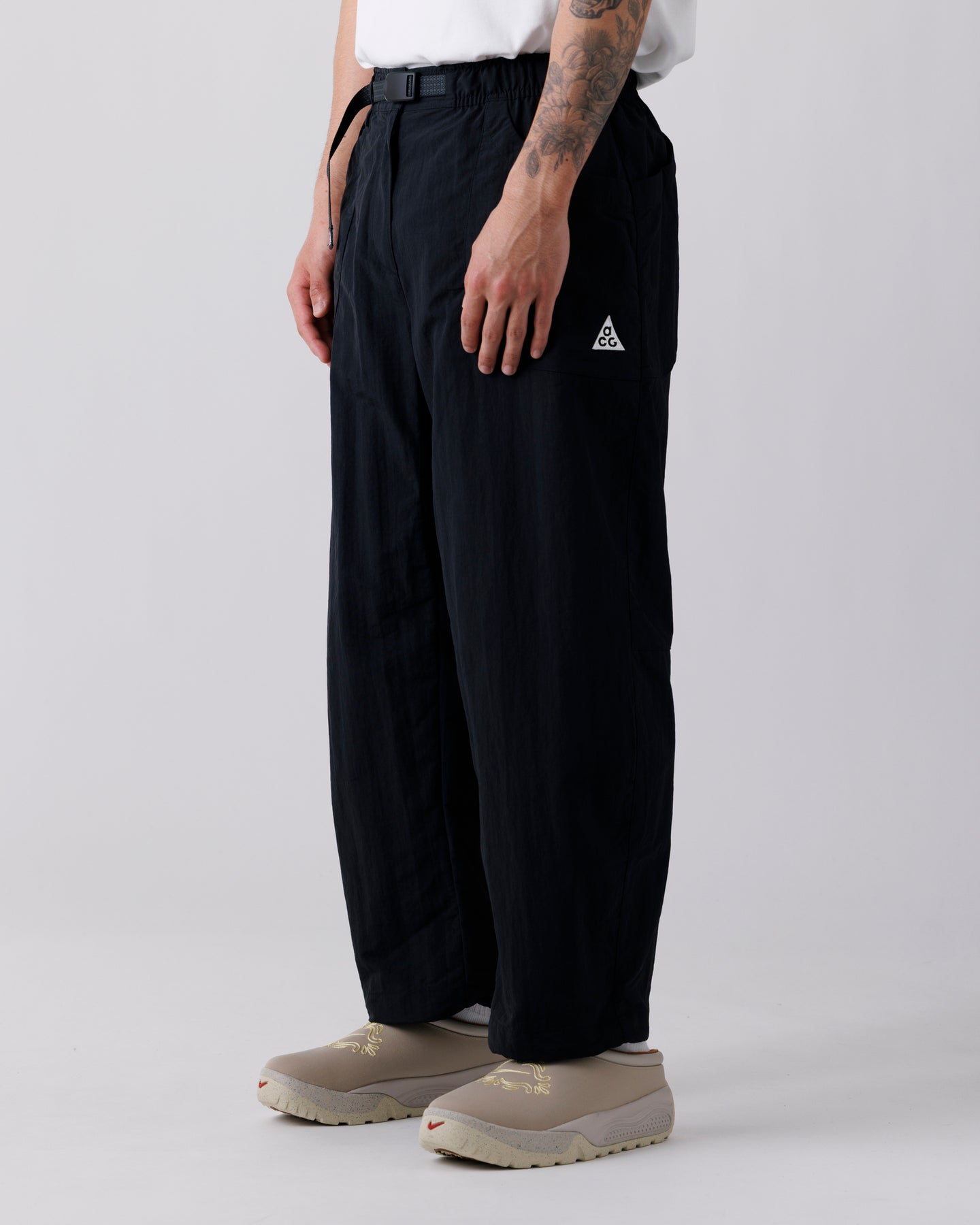 シルエットは程よくゆとりを持たせた設計で、レイヤードやボリュームのあるシューズとも好相性。ウエストやディテールには実用性を考慮した仕様が落とし込まれ、ACGらしい機能美を感じさせます。タウンユースにも自然と馴染むミニマルな表情で、スタイリングの幅を広げてくれる一本。
