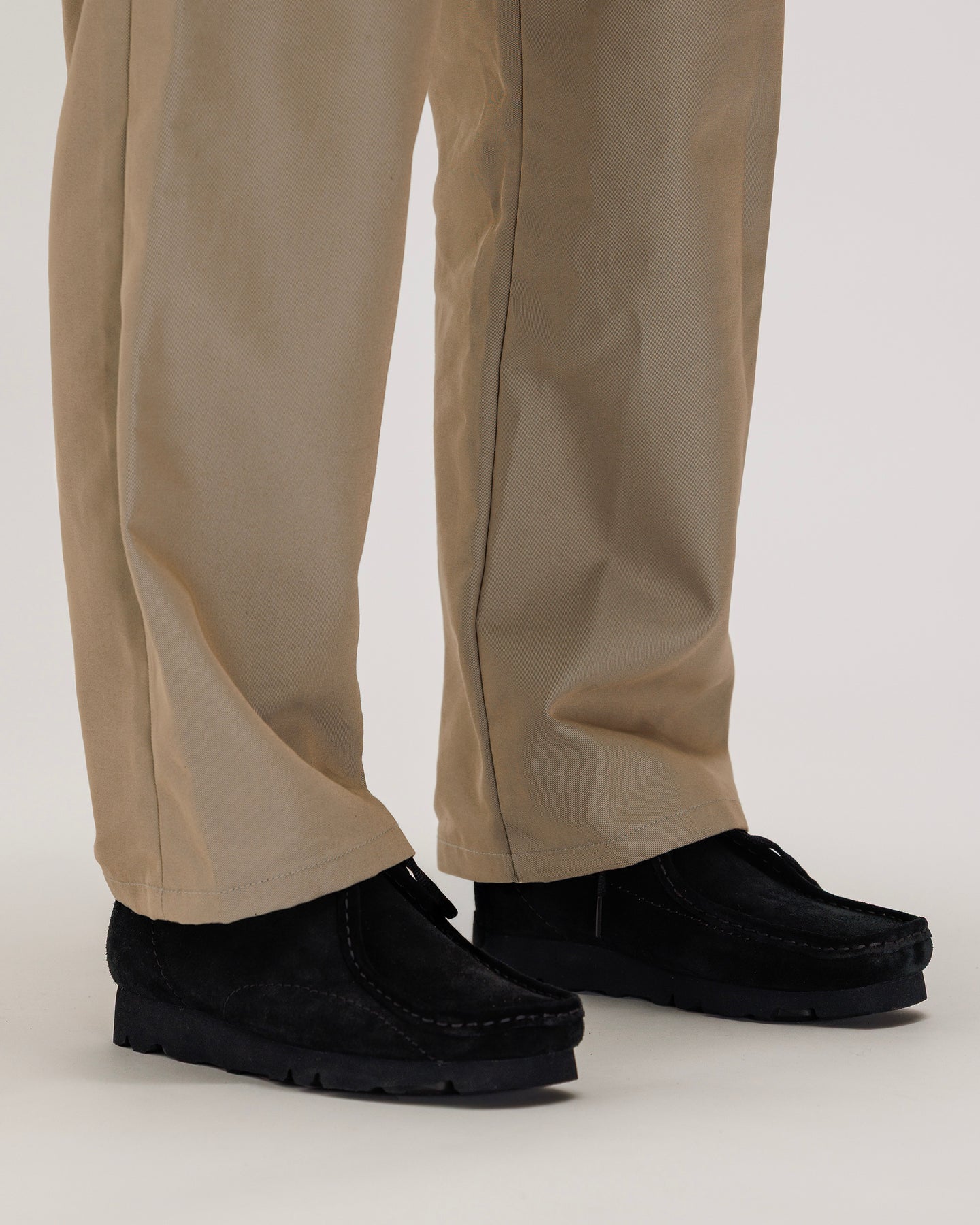 2018年にソウルで設立された〈POST ARCHIVE FACTION(PAF)〉は、造形への革新的なアプローチと社会・文化的メッセージ性で国際的に評価されるブランド。〈Clarks〉とのコラボレーションでは、クラフツマンシップ、ヘリテージ、そして革新的デザインという両者の理念が見事に融合しています。ベースとなる「Wallabee」は、象徴的なシルエットを保ちながらもアッパーを分割構造で再構築。重なり合うパネルデザインと二重ステッチの精緻なラインが、PAFらしい建築的アプローチを体現しています。「デザイン」と「象徴」の両面に焦点を当て、韓国の伝統的な儀式や自然との精神的つながりを表すトーテミックなモチーフを現代的に再解釈。実験的な構造と上質な素材選定により、クラークスの遺産を未来へとつなぐ新たな「WallabeeBT PAF」が誕生しました。
