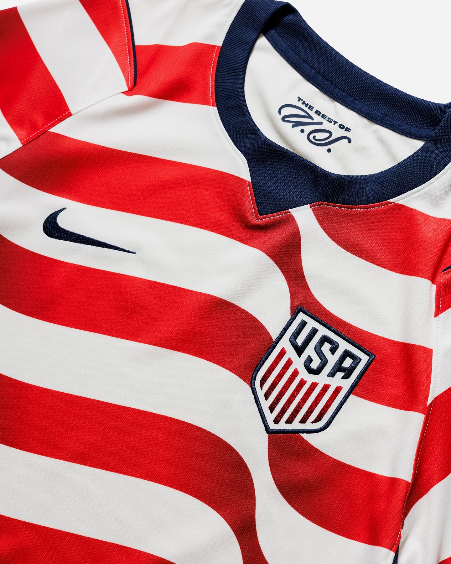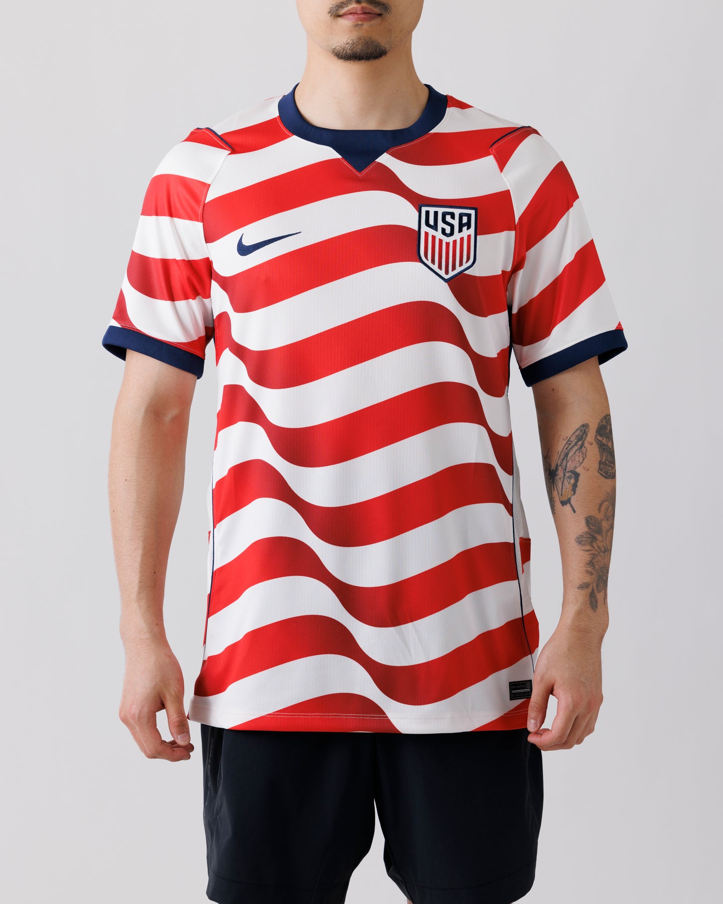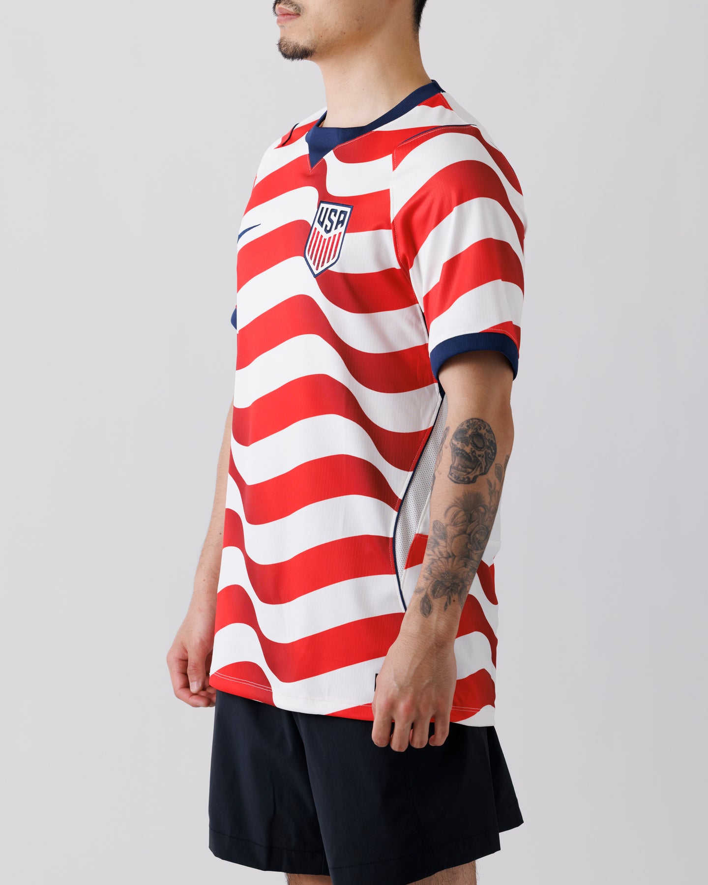 アメリカ代表のホームスタジアムジャージーをベースにした半袖トップ。軽量で通気性に優れた素材に、汗をすばやく吸収・発散するNike Dri-FITテクノロジーを搭載し、試合中はもちろん日常のスタイリングでも快適な着用感を提供します。