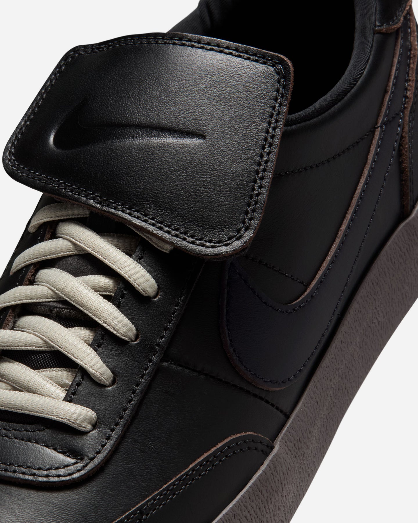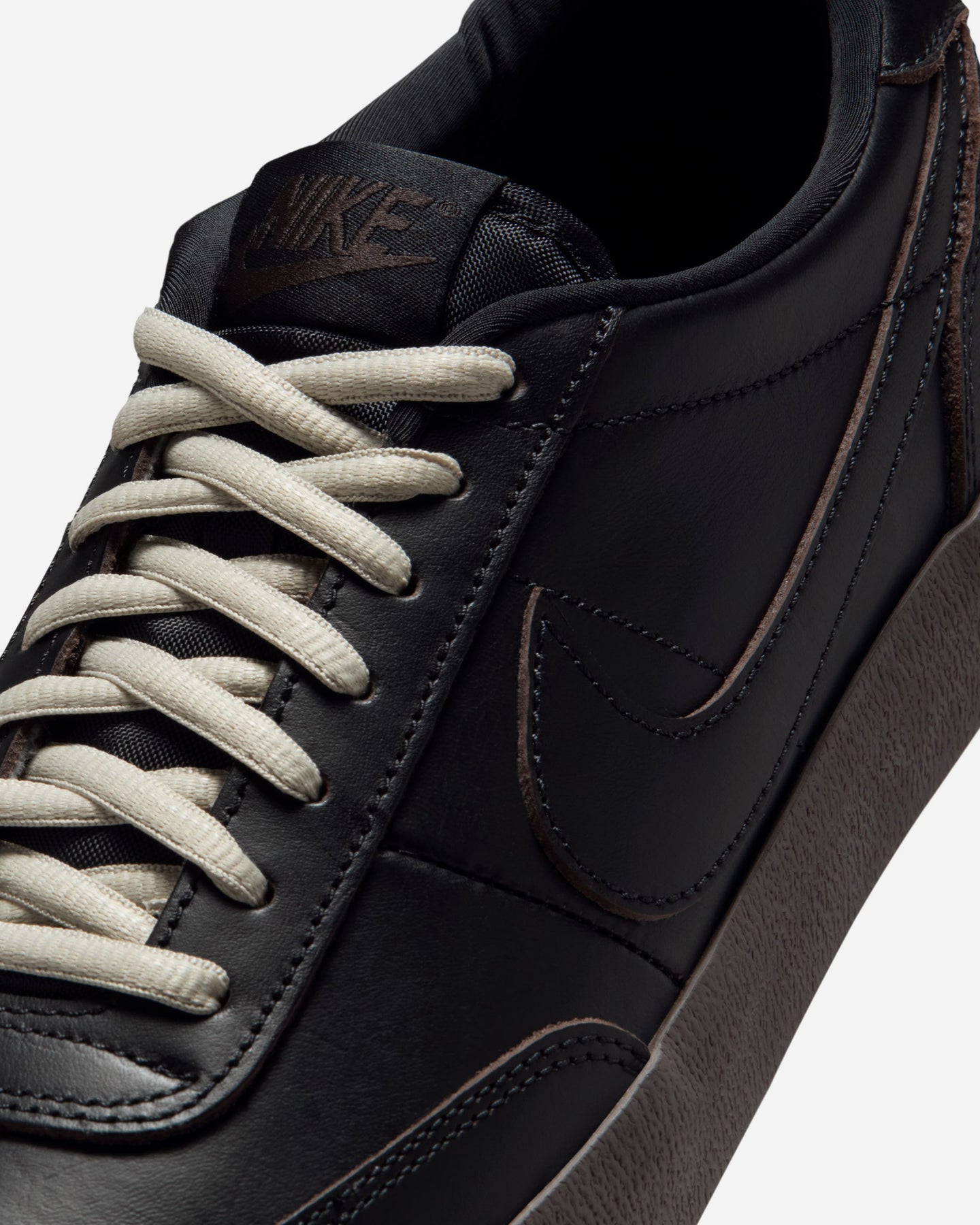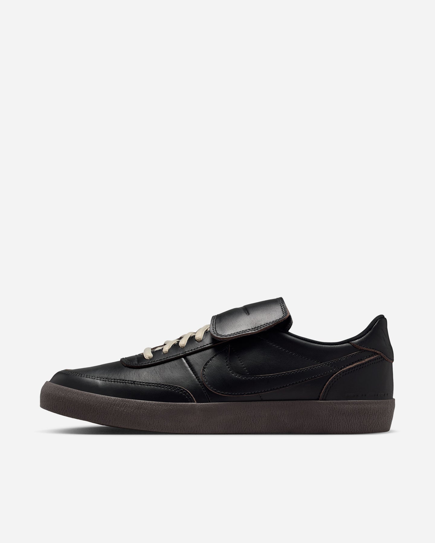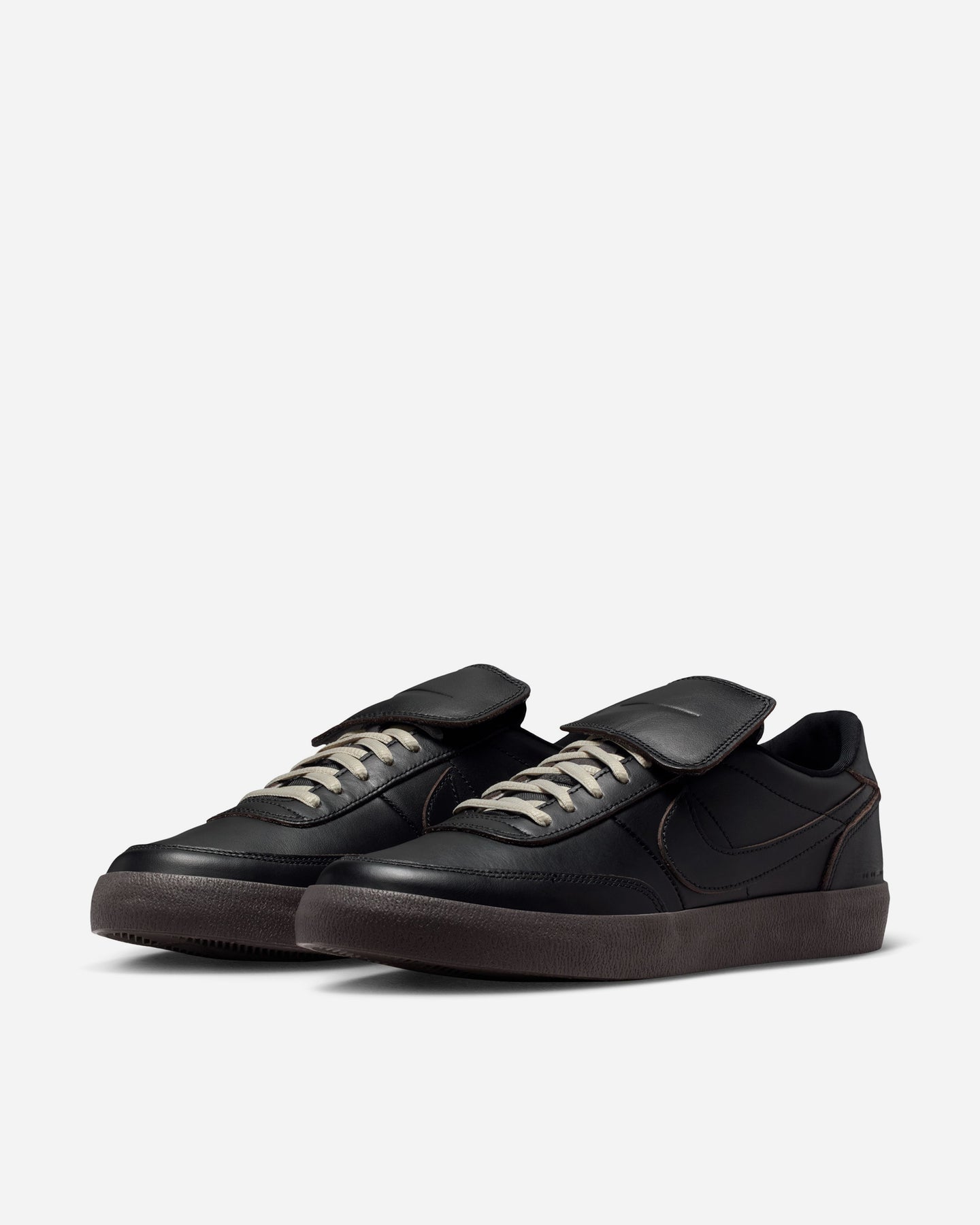 テニスシューズをルーツに持つキルショット 2を、上質なレザーで再構築した“LEATHER PRM”モデル。ブラックを基調としたミニマルなアッパーは、滑らかなスムースレザーとスエードの異素材を重ねることで奥行きのある表情を生み出し、どんなスタイルにも自然に馴染む洗練された印象に仕上がっています。