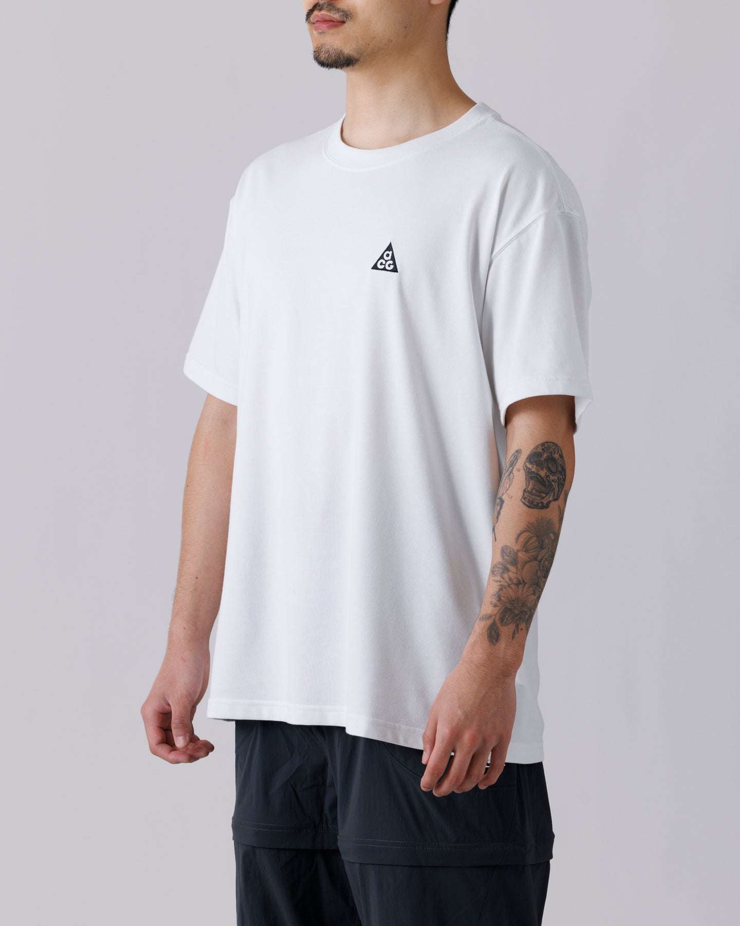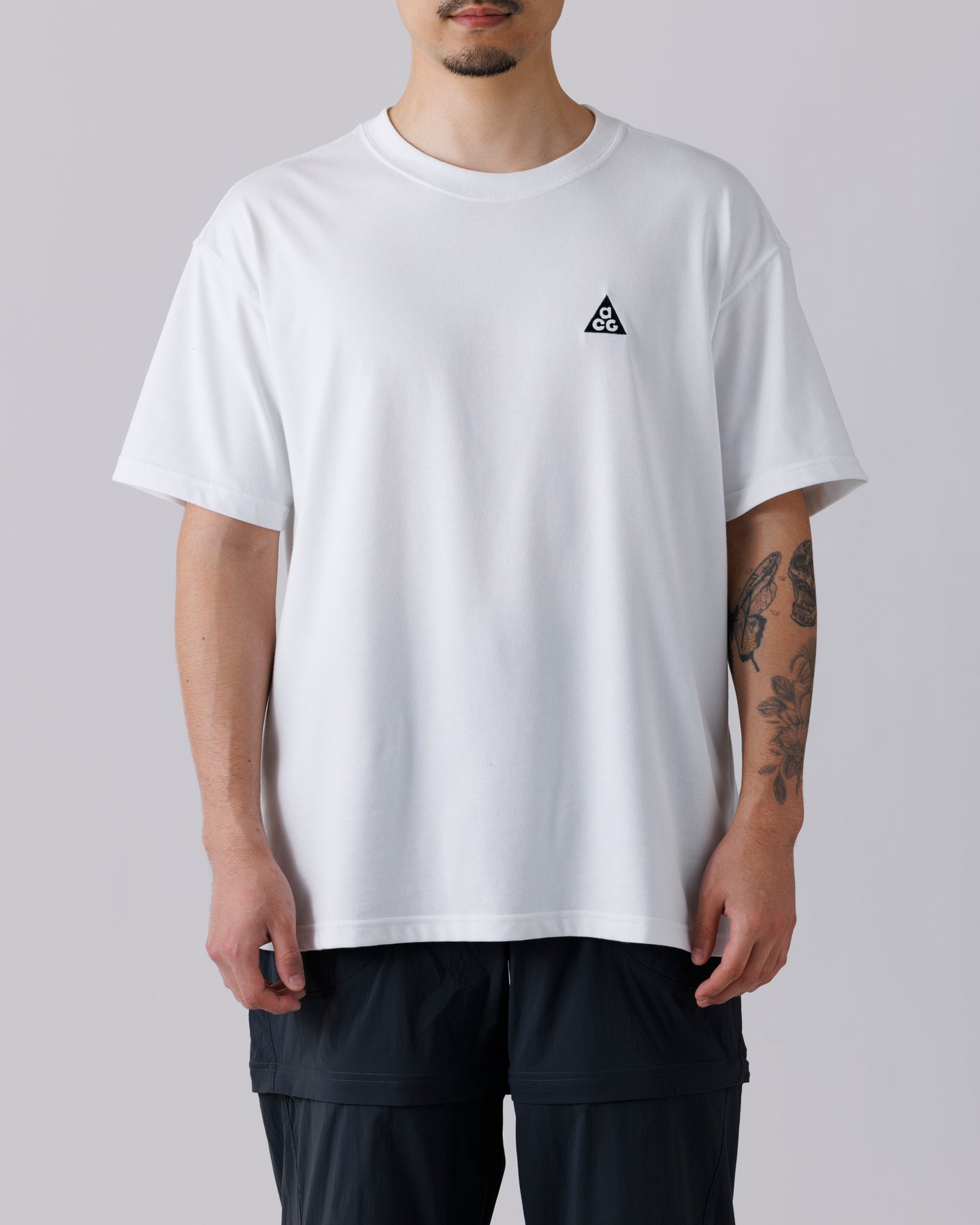 日常からフィールドまで自然に馴染む、NIKE ACGのショートスリーブTシャツ。シンプルな構成の中に、耐久性と快適性を丁寧に織り込んだ一枚です。