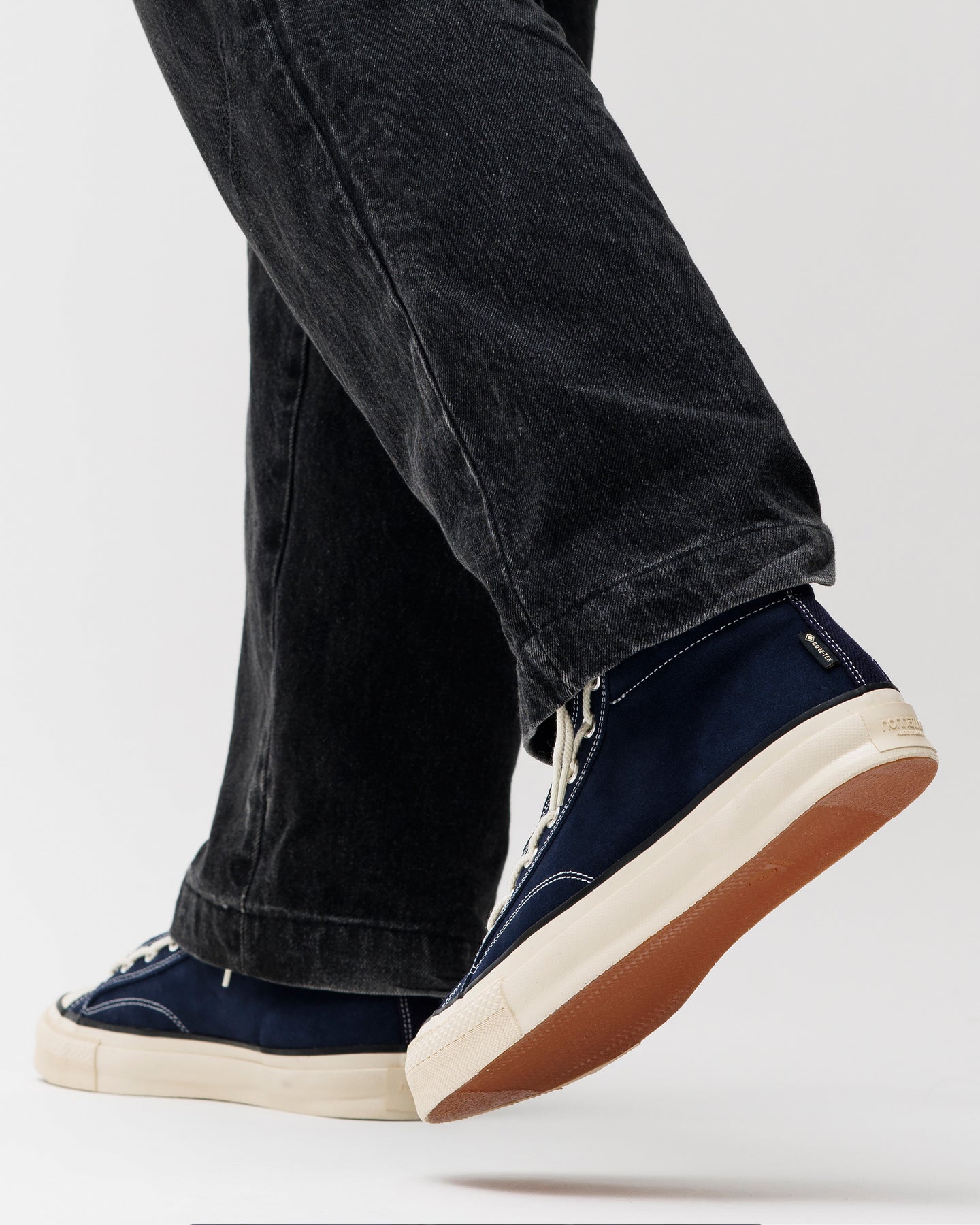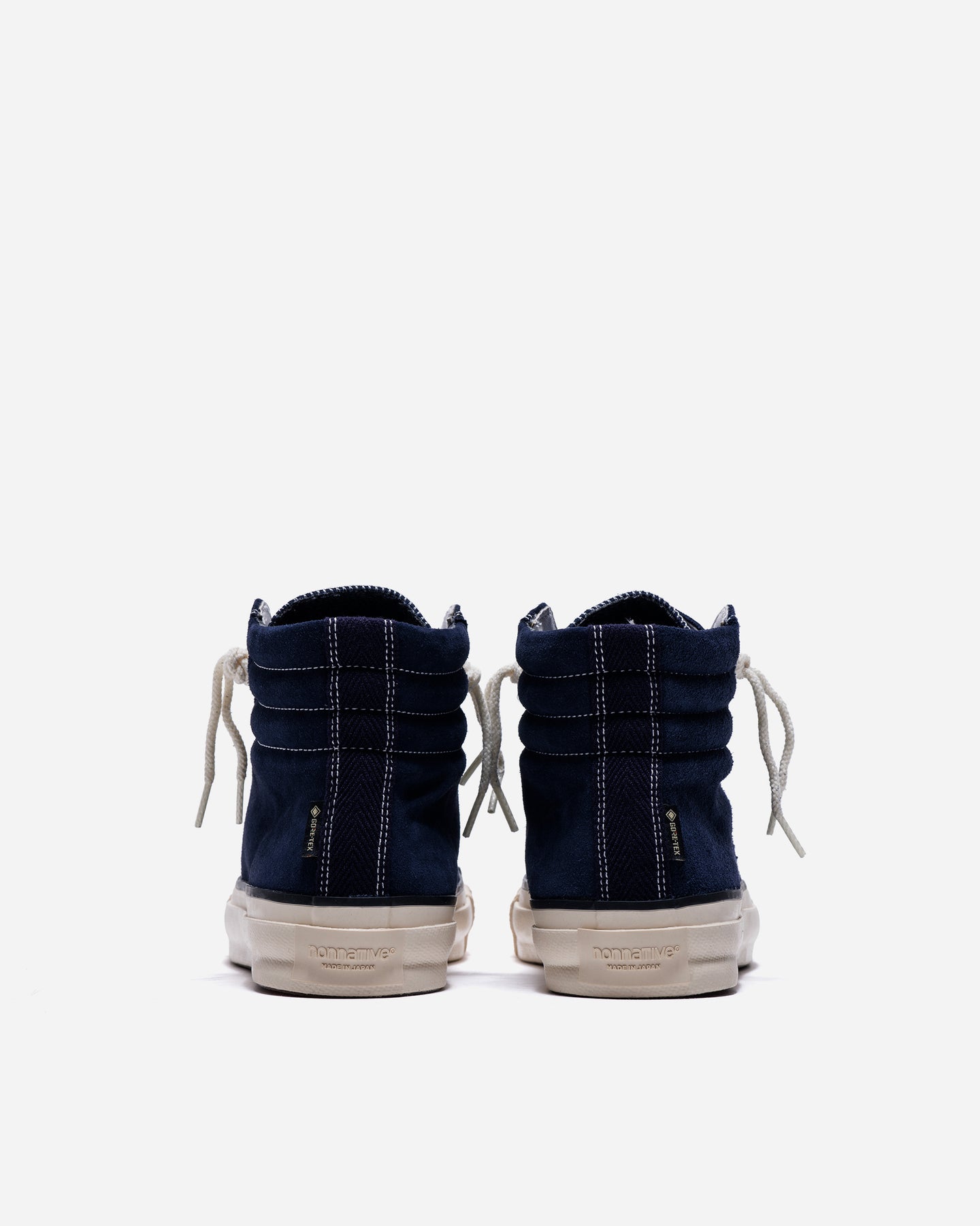 〈nonnative〉と国内シューズブランド〈SPINGLE〉が共同製作したハイカット仕様のDWELLER TRAINER。アッパーには上質なカウレザーを使用し、GORE-TEX® インサートを搭載することで全天候に対応する機能性を備えています。しなやかで足馴染みの良いレザーと、手作業によるバルカナイズ製法特有の包み込むような履き心地はSPINGLEならでは。ミニマルなデザインの中に確かな実用性が息づき、街でも旅先でも頼れる一足です。クラシックなシルエットをベースにしながらも、クラフトと機能を共存させた設計で、日常に自然と溶け込む一足です。