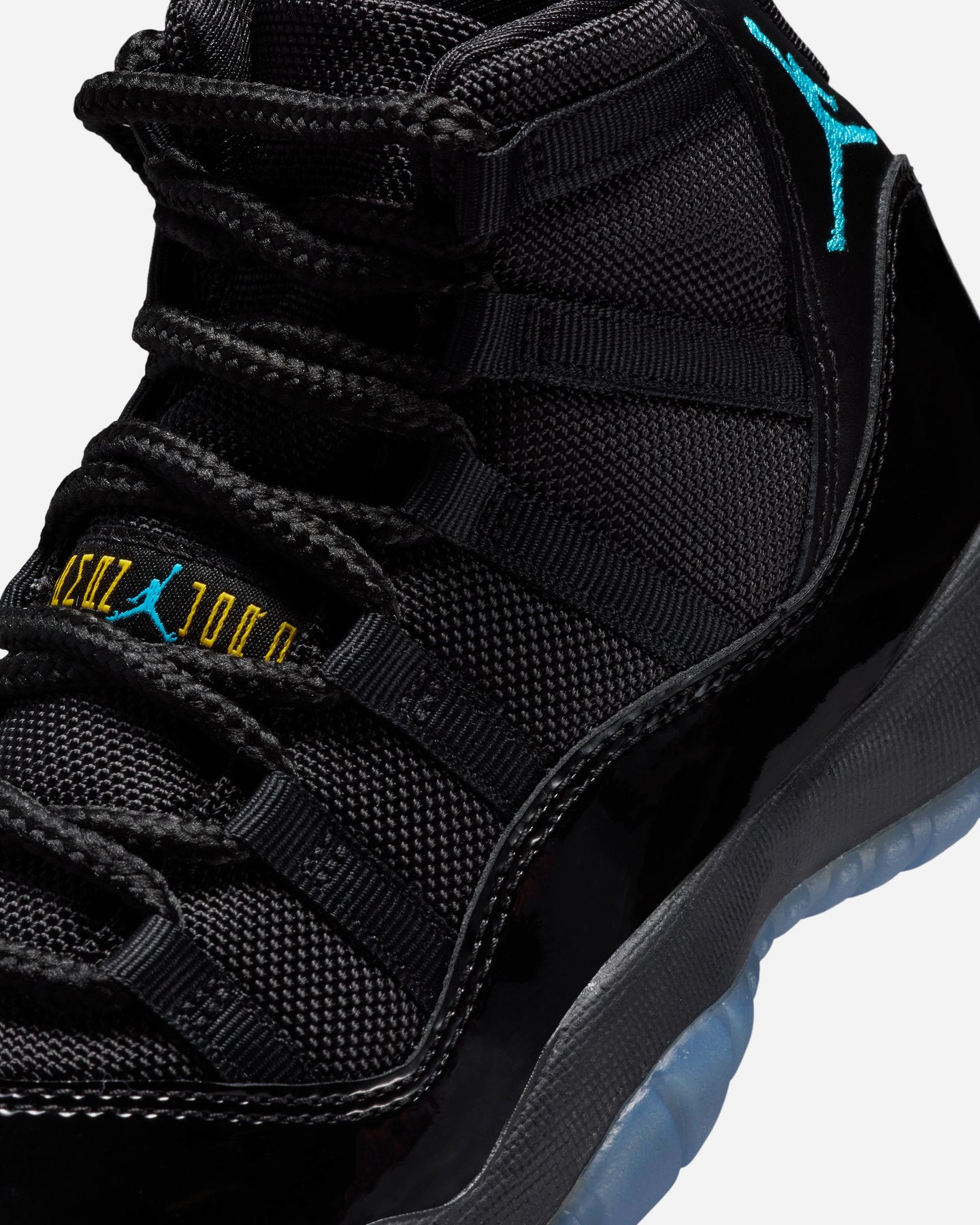 オリジナルモデルを彩る、インパクト抜群の鮮やかさ。エア ジョーダン 11 ‘Gamma’は、これまでのデザインコードをスタイリッシュに書き換える。漆黒の夜へと溶け込むデザインで、初のオールブラックのカラーリングを採用した一足は、ガンマブルーに秘められた内なる「炎」を見せるのではなく、そっと心へ忍び込ませる。特徴的なエナメルレザーのマッドガードとトランスルーセントのアウトソールが、まぎれもない高エネルギーで夜空を照らし出す。
