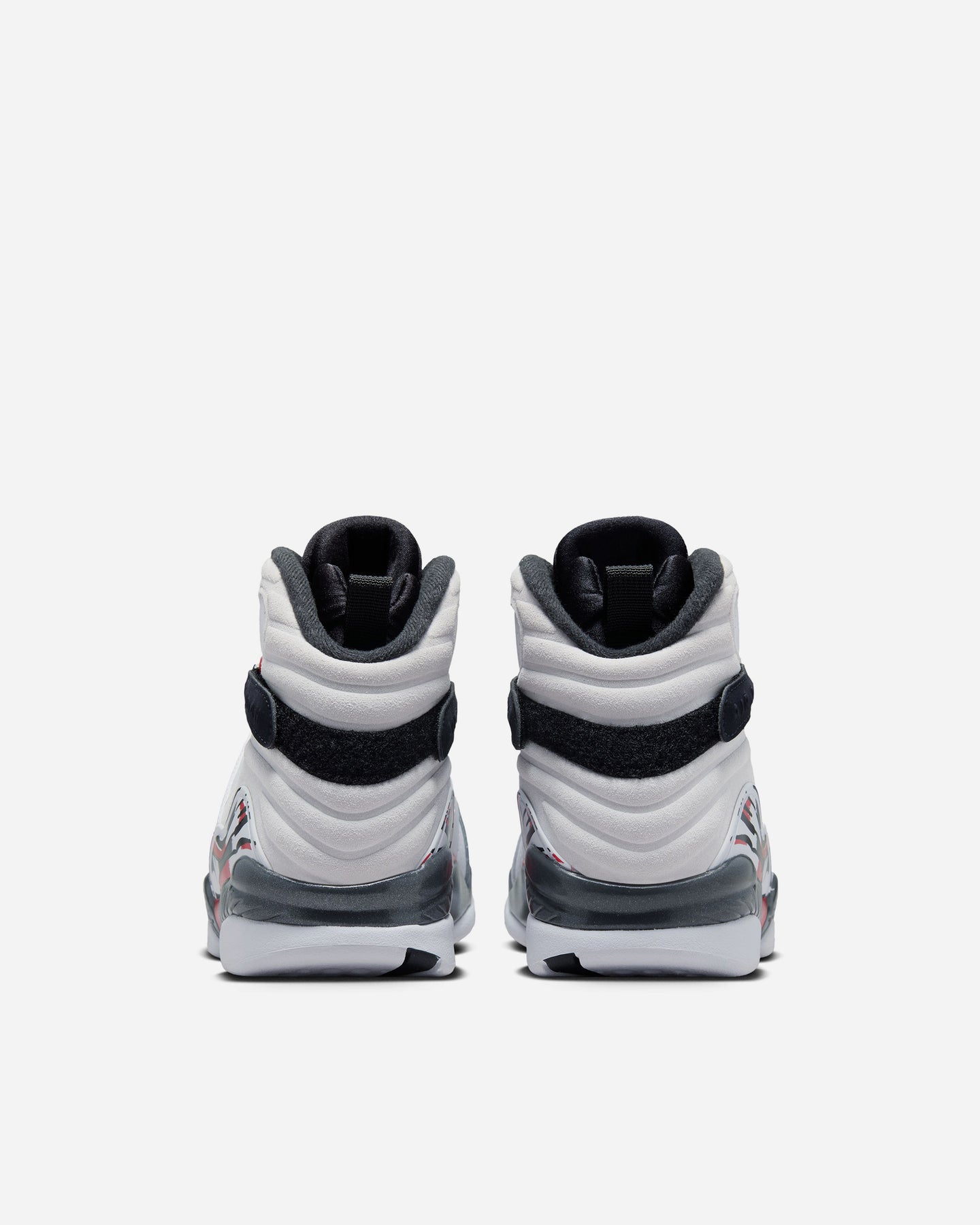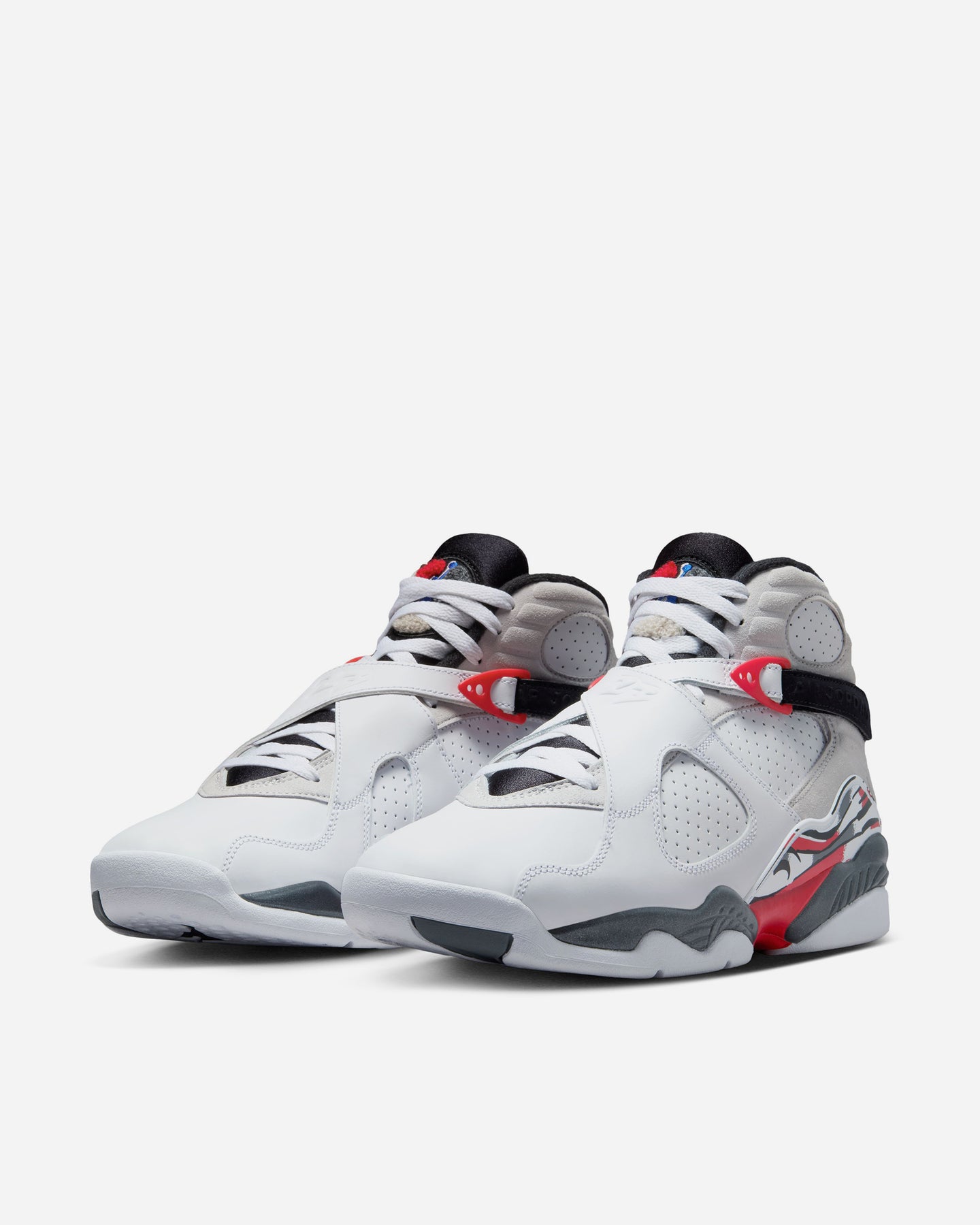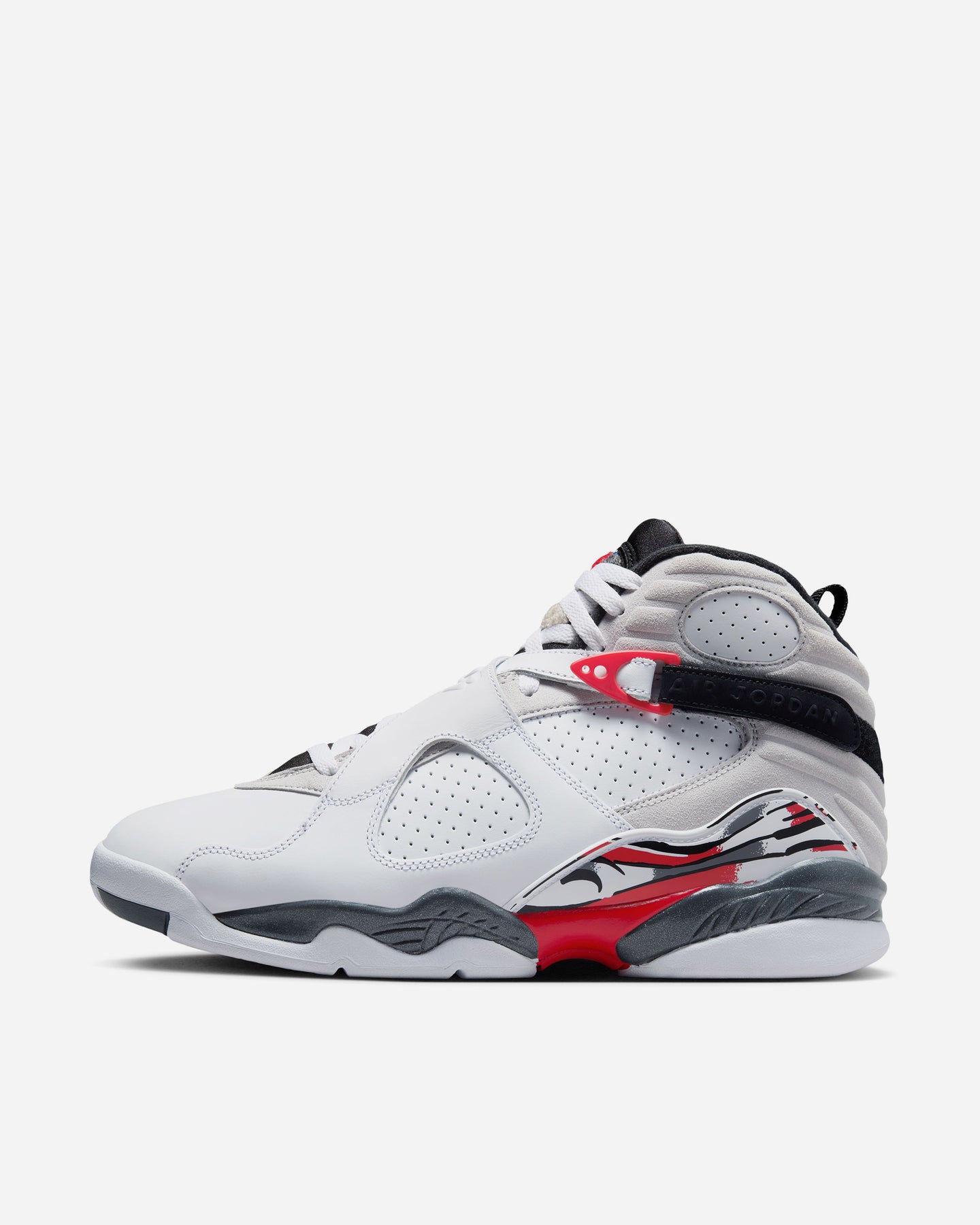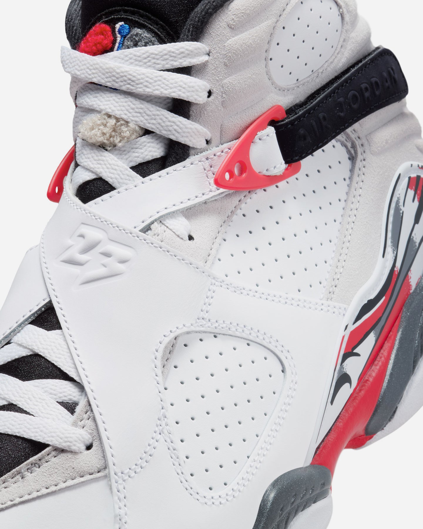 エア ジョーダン 8は、マイケル・ジョーダンの92~93年の優勝シーズンに誕生したクラシックな一足。あのウサギのアニメキャラクターの足元を飾ったことでも知られている。今回のエディションは、そのクラシックさを象徴する成型ディテールとストラップを備え、90年代らしいホワイトのレザーアッパーに、グレーのスエードアクセントと存在感のあるトゥルーレッドを組み合わせたデザイン。シュータンのジャンプマンは鮮やかなブルーでひときわ際立つ。まさにHare Jordan(ウサギのジョーダン)と呼ぶにふさわしいモデルだ。