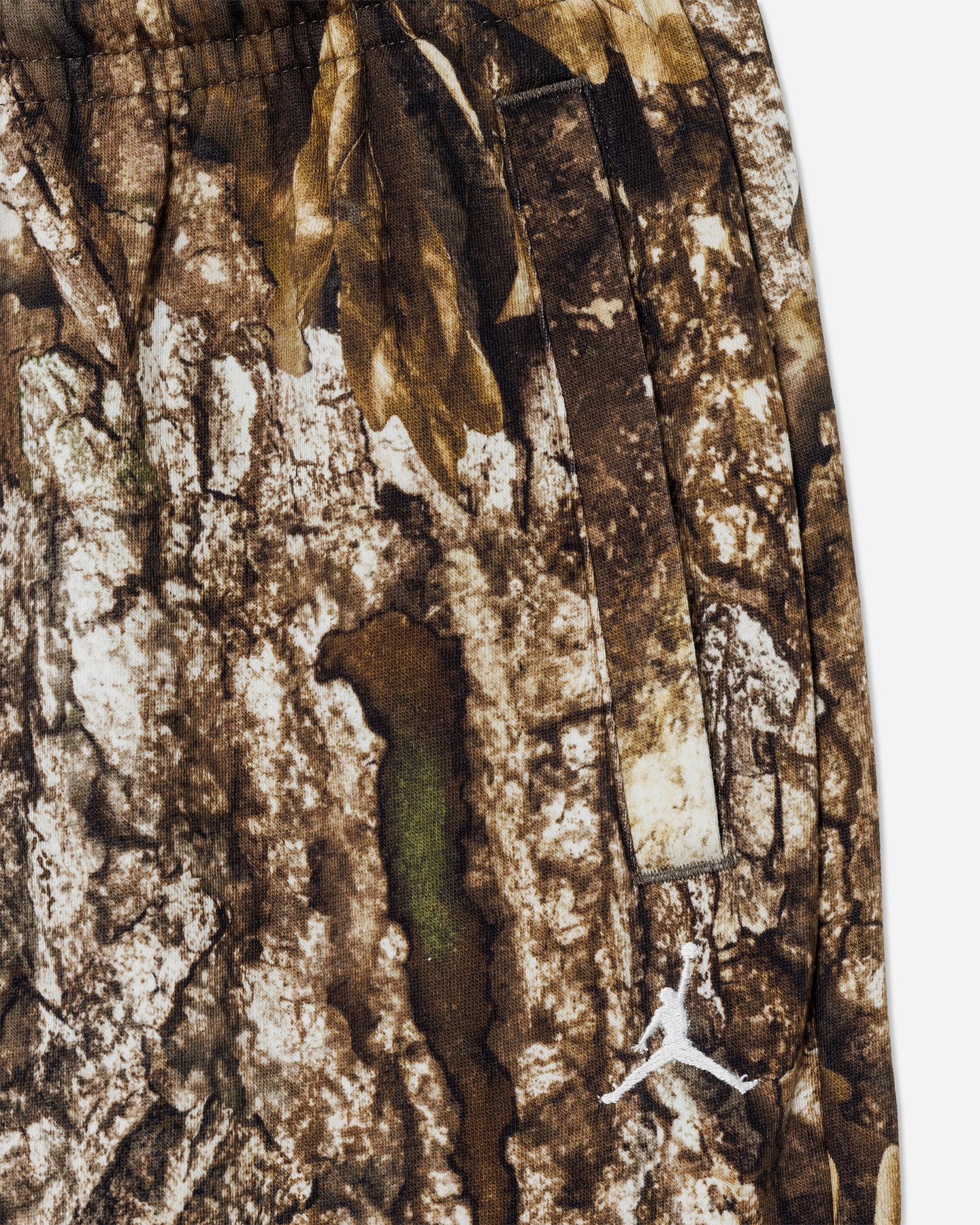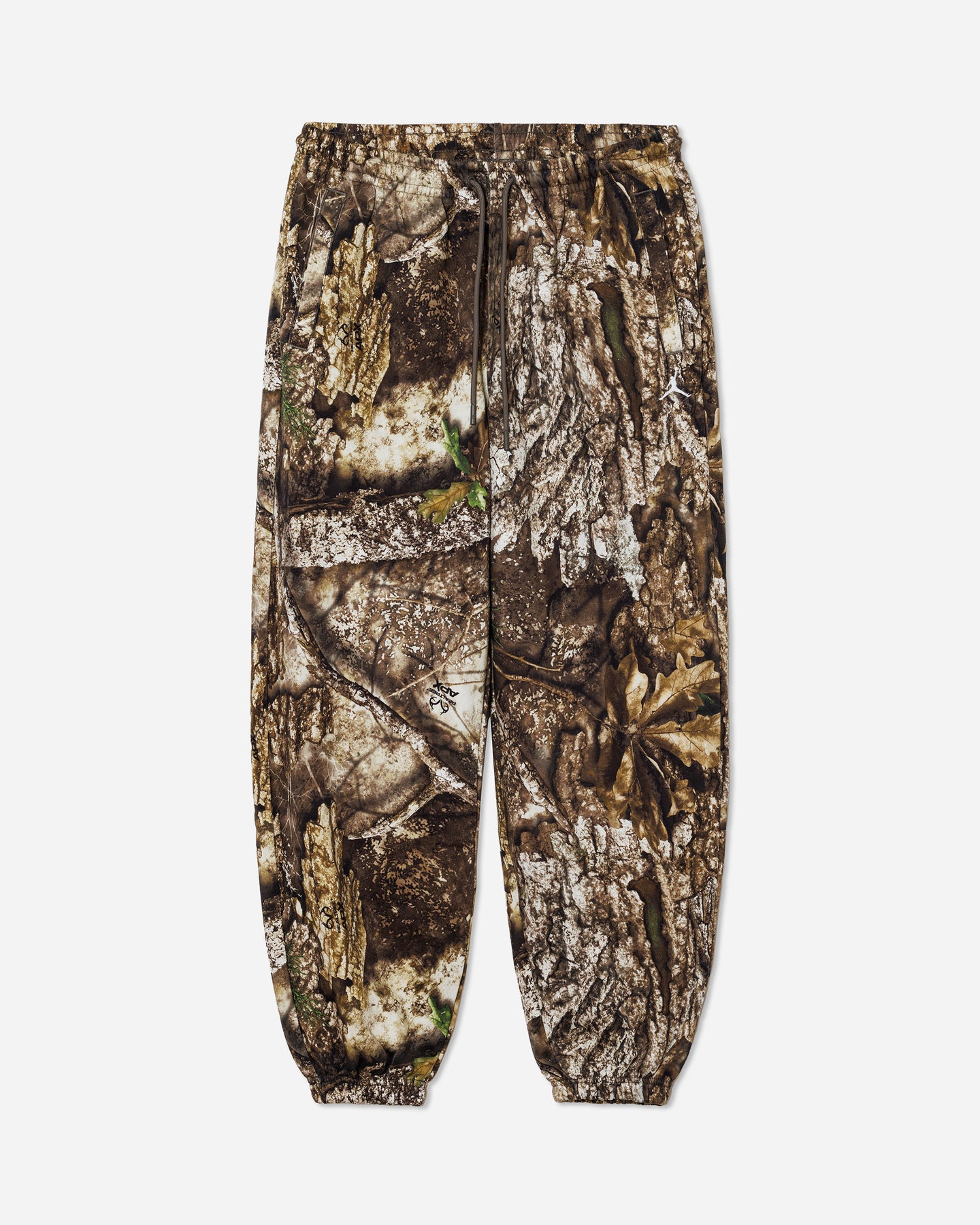 Jordanとリアルツリーのスタイルが融合したルーズフィットのスウェットパンツ。表はなめらかで、裏は起毛したフリース素材が温かく包み込みます。コットンとポリエステル構成の本体は、快適な着心地と耐久性のバランスを実現。ウエストはゴム+ドローコード仕様でフィットを調整可能。サイドポケットとバックポケットを備え、小物の収納性も確保。街歩きにもアウトドアにも映えるミリタリートーンを基調とし、Jordan ロゴやカモ柄をアクセントとして配置。リラックススタイルやセットアップとの組み合わせも自在な一本です。