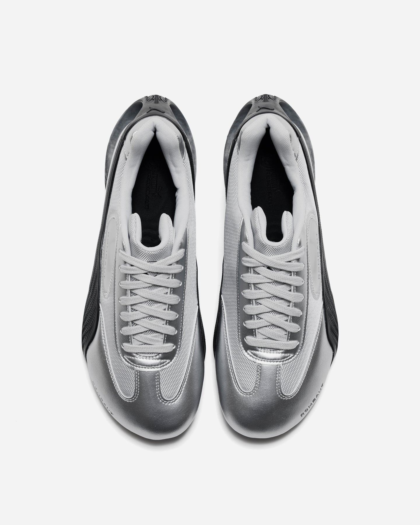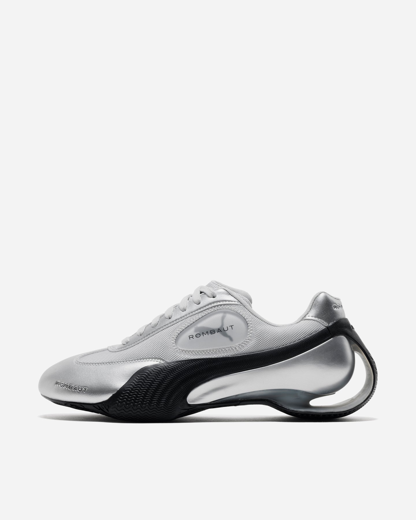 PUMA × ROMBAUTの新コレクションは、ROMBAUTらしいレトロフューチャーな美学でSPEEDCATを再構築。テクニカルなシルバーメッシュと人工レザーを組み合わせ、ブランドの象徴であるセルバブルのディテールを添えることで、“自然とテクノロジーの調和”という思想を有機的なラインで表現しています。