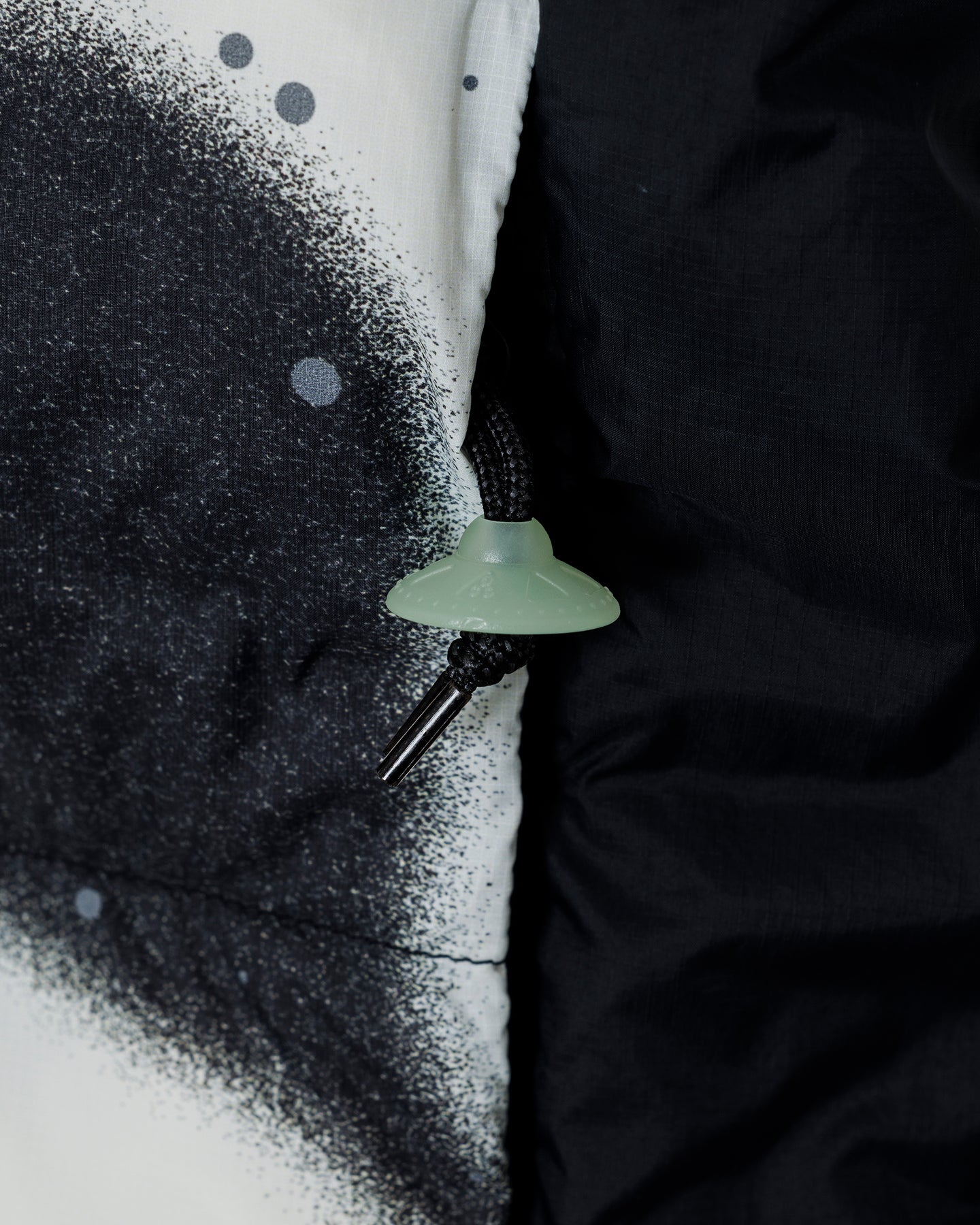 米国オレゴン州の火山地帯“Lunar Crater Lake”の雄大な自然に着想を得て誕生したルナ レイク ジャケット。寒冷な環境での探検を想定し、軽量ながら確かな保温性を誇るPrimaLoft®断熱素材と、Nike Therma-FIT ADVテクノロジーを組み合わせ、常に快適な温度をキープします。ルーズフィットのシルエットは重ね着に最適で、フードとスヌードを一体化したデザインが頭部と顔周りをしっかりカバー。ウエストのバンジーシステムでフィット感の調整も容易です。さらに、内側のメッシュスタッフサックに収納できるパッカブル仕様で、キャンプ時には枕としても活躍。暗闇で光るグローインザダーク仕様のACGロゴとUFOビーズが、夜の冒険に遊び心を添えます。機能性とデザイン性を高次元で融合させた、冬のアウトドアに最適な一着です。