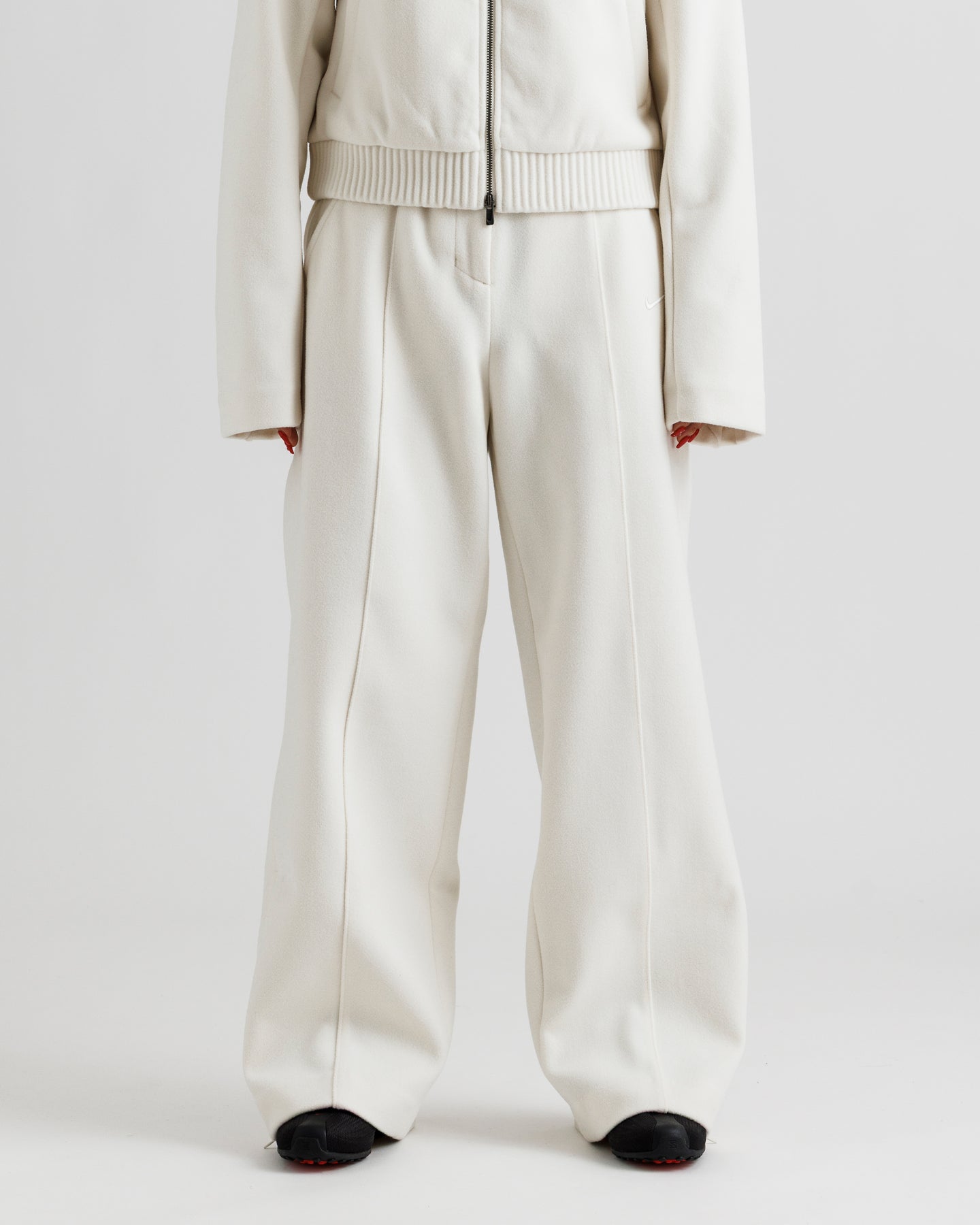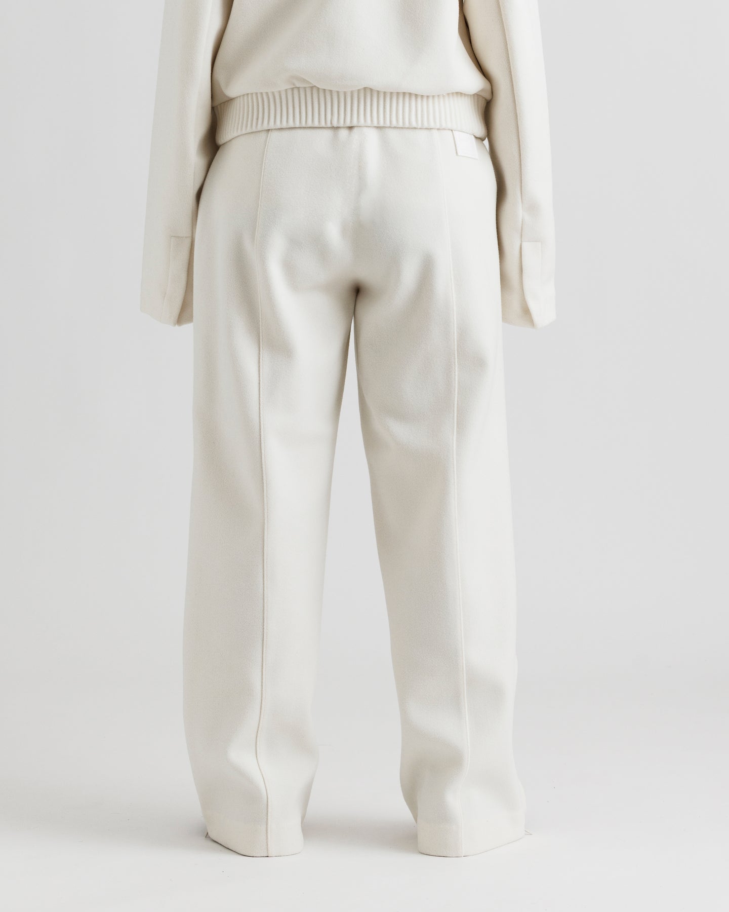 テーラードフィットの上品さと、リラックスウェアの快適さを兼ね備えたトラウザーパンツ。重みのあるフレンチテリー素材を使用し、構築的なシルエットを描きながらも一日中快適な着心地を提供します。わずかにゆとりを持たせたストレートラインが脚を美しく見せ、動きに合わせて自然なドレープを生み出します。ウエストはバックゴム仕様でフィット感を自在に調整でき、オンでもオフでもストレスなく着用可能。シャツやテーラードジャケットと合わせればモダンなセットアップスタイルに、スニーカーで外せば抜け感のあるリラックスルックにも。日常に品と余裕をもたらす一本です。