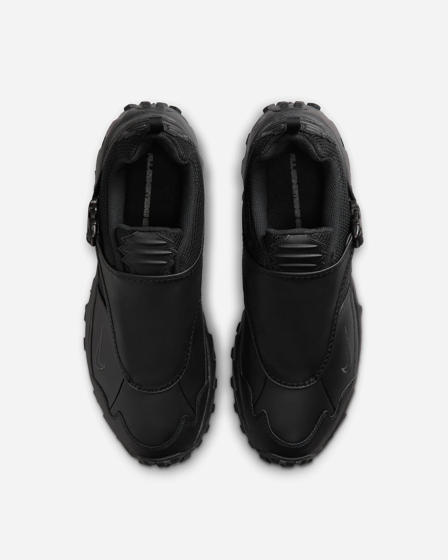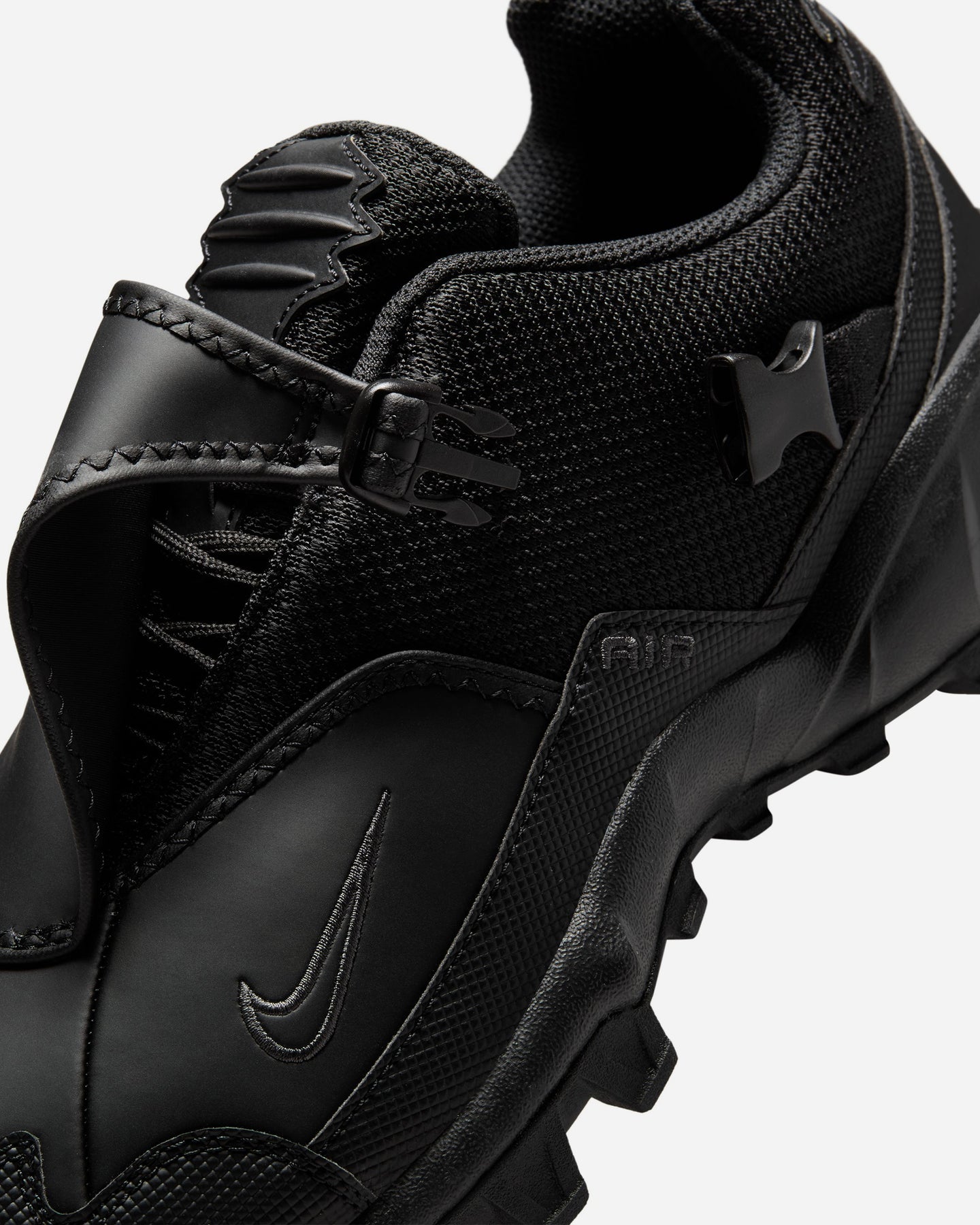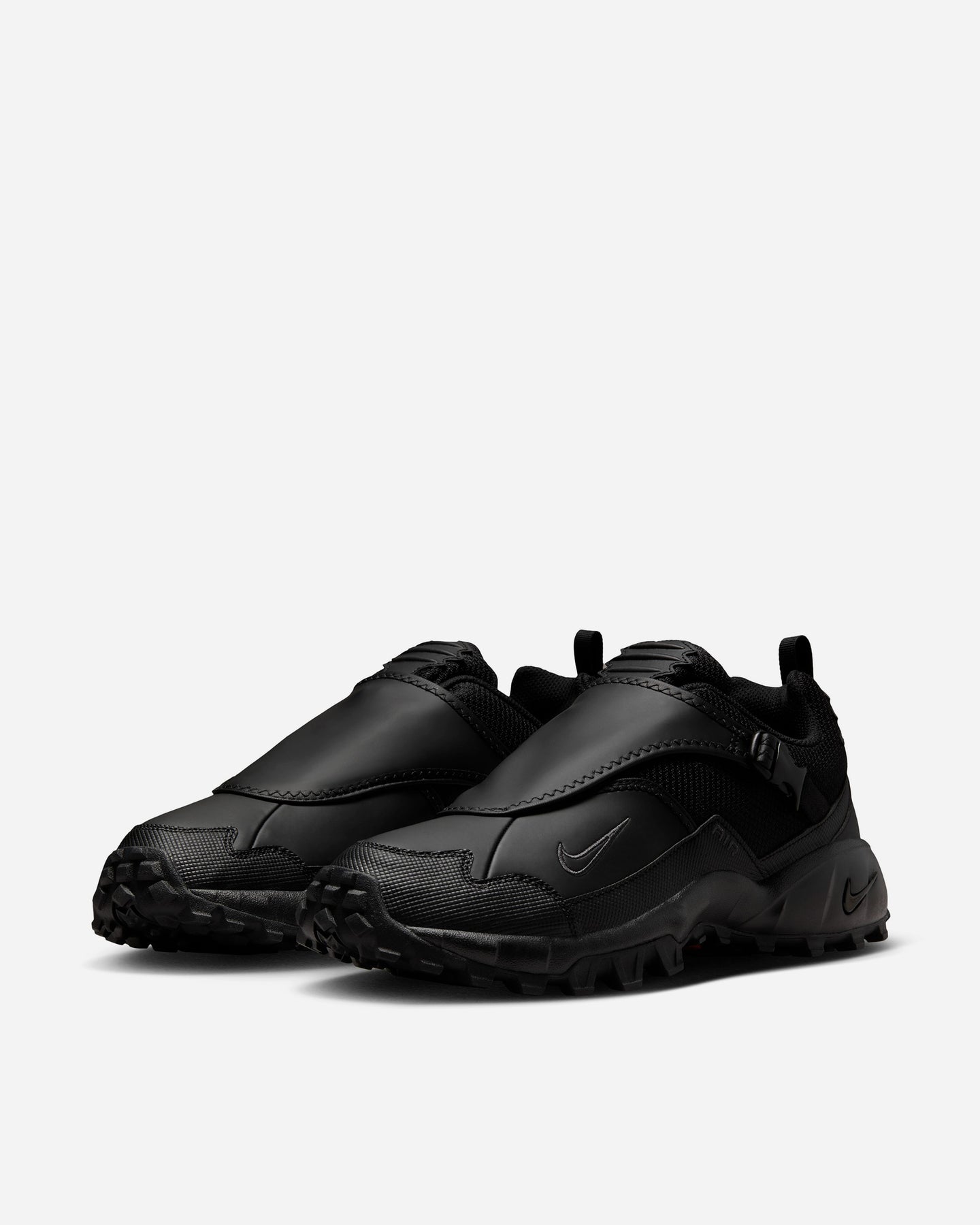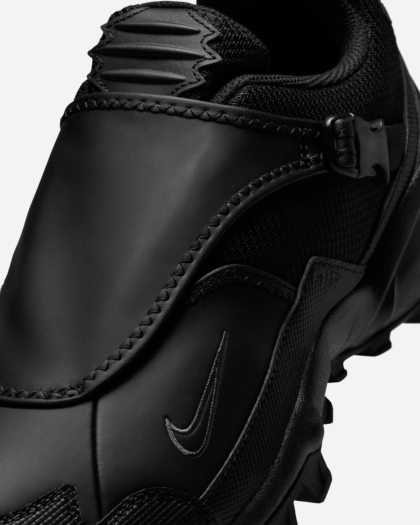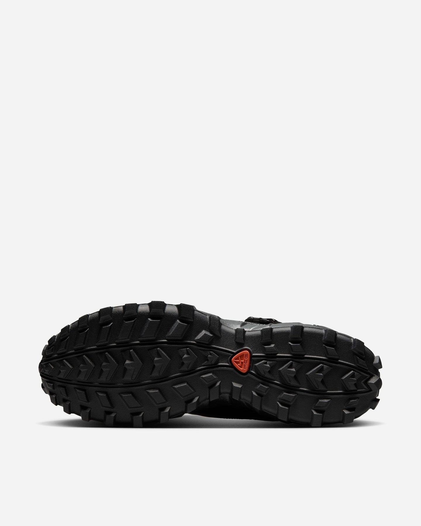 ローカットに近いシルエットながら、足の甲を覆うシュラウド構造と、テントの雨除けフラップを思わせるベルクロ留めのカバーを採用。側面には独自のバックル付きストラップが備えられ、カバーをしっかりと固定しながらフィット感を自在に調節可能。アウトソールには厚みのある頑丈なラバーを用い、マウンテンバイクのタイヤのような深いラグパターンを刻むことで、泥や砂利道といったタフな地形でも圧倒的なグリップ力を発揮。