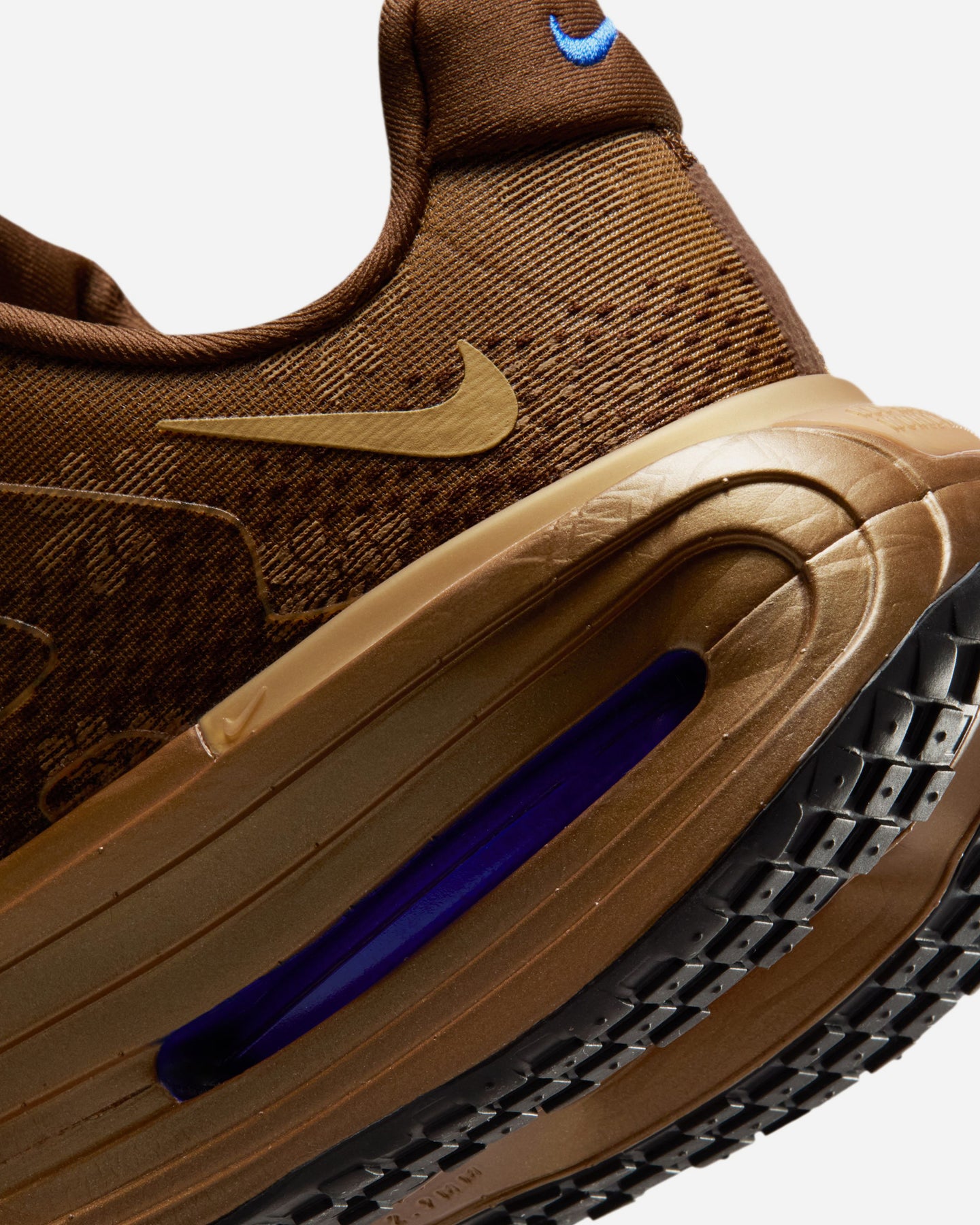 ミッドソール全体に広がるクッショニングは、沈み込みすぎることなく、包み込まれるような感覚。前足部とかかとのAir Zoomがリズムを保ち、テンポを乱さず前へと導きます。