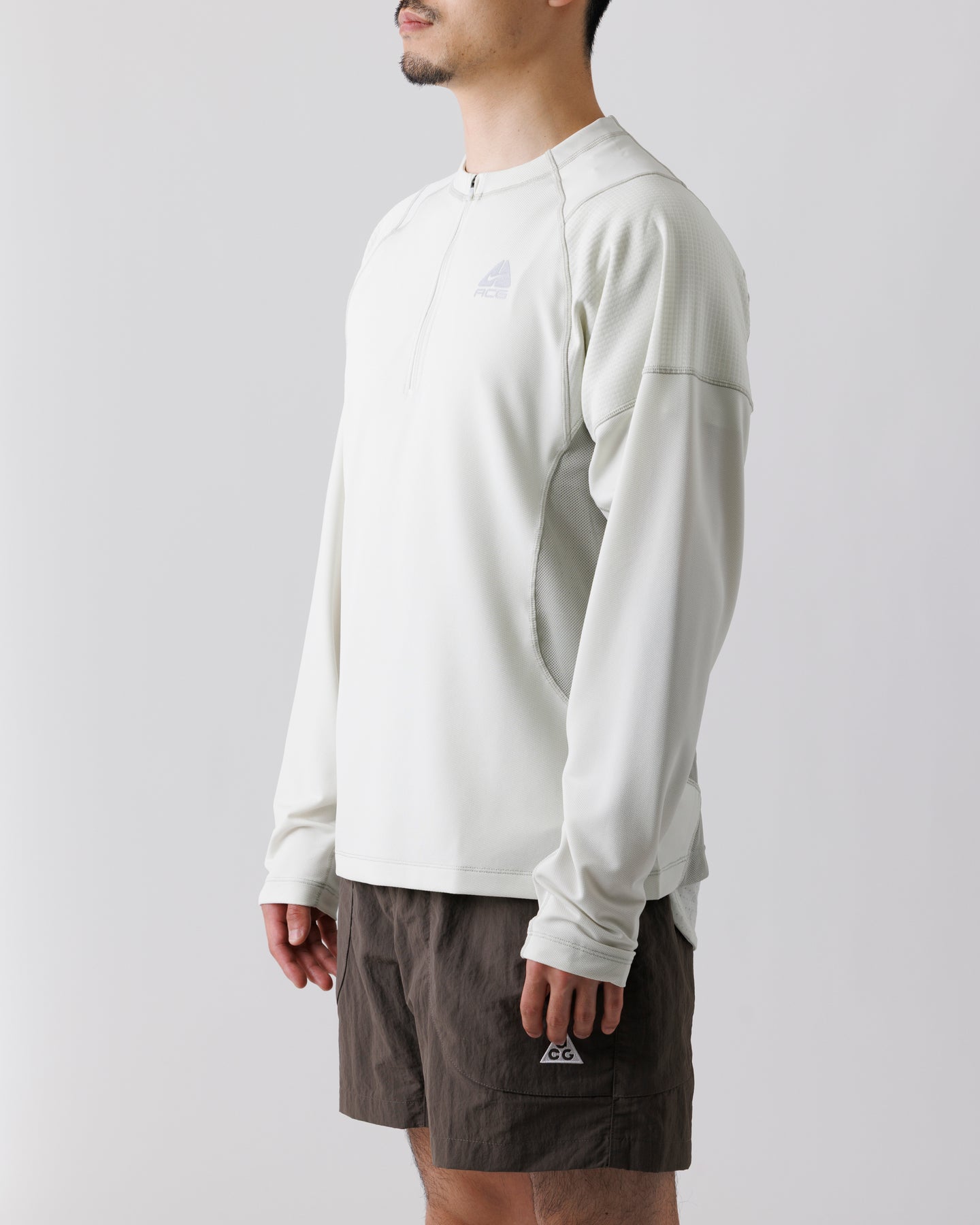過酷な環境での行動を想定して設計された、NIKE ACGのロングスリーブトップ。軽快な着用感と機能性を両立し、レイヤリングのベースとしても扱いやすい一着です。