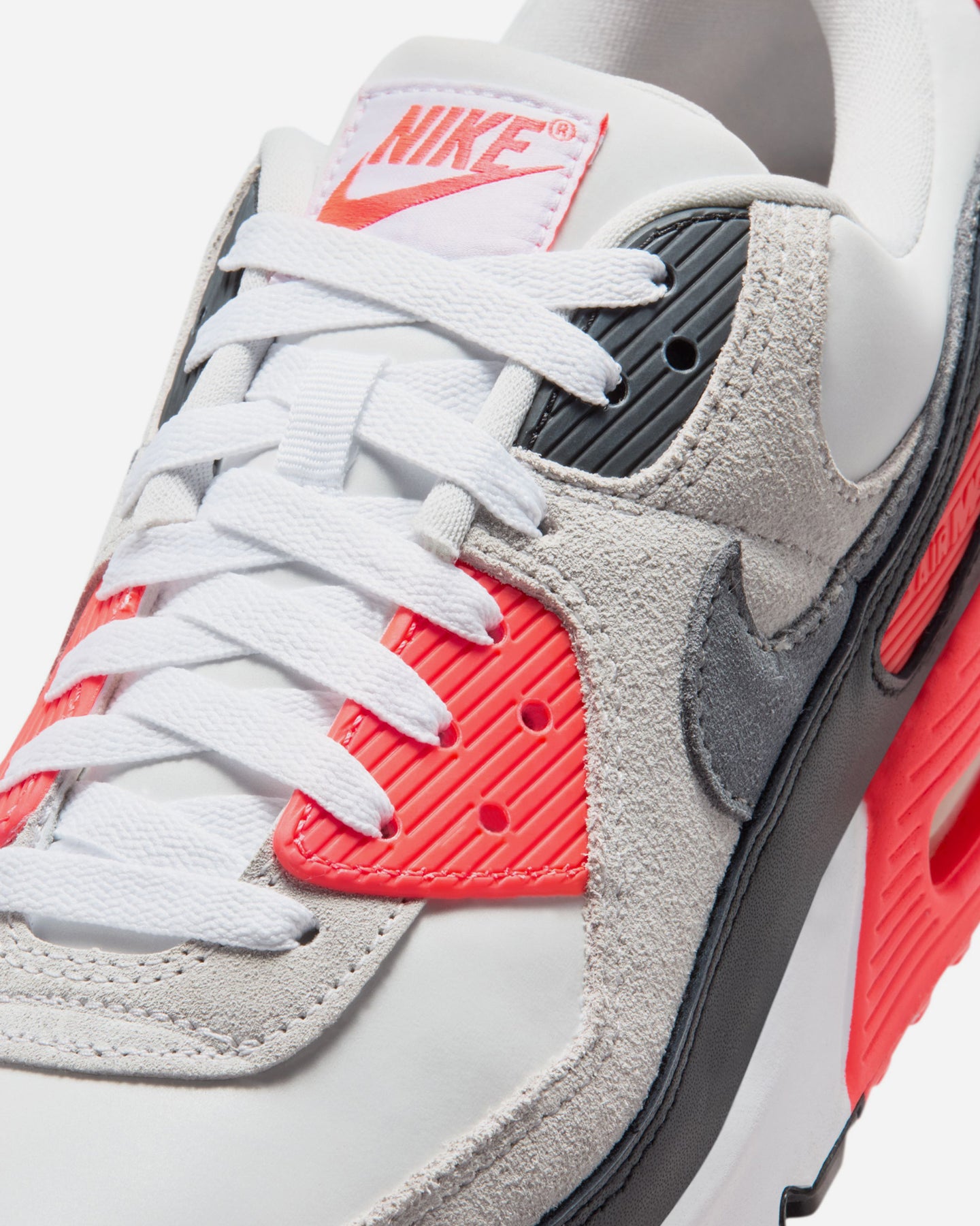 パネルごとのコントラストや、ヒールに覗くビジブルAirの存在感。無駄のない構成が、デザインそのものの完成度を際立たせます。インフラレッドの鮮やかなアクセントが、グレーやブラックのベースに映え、当時の空気感をそのまま現代へとつなげています。