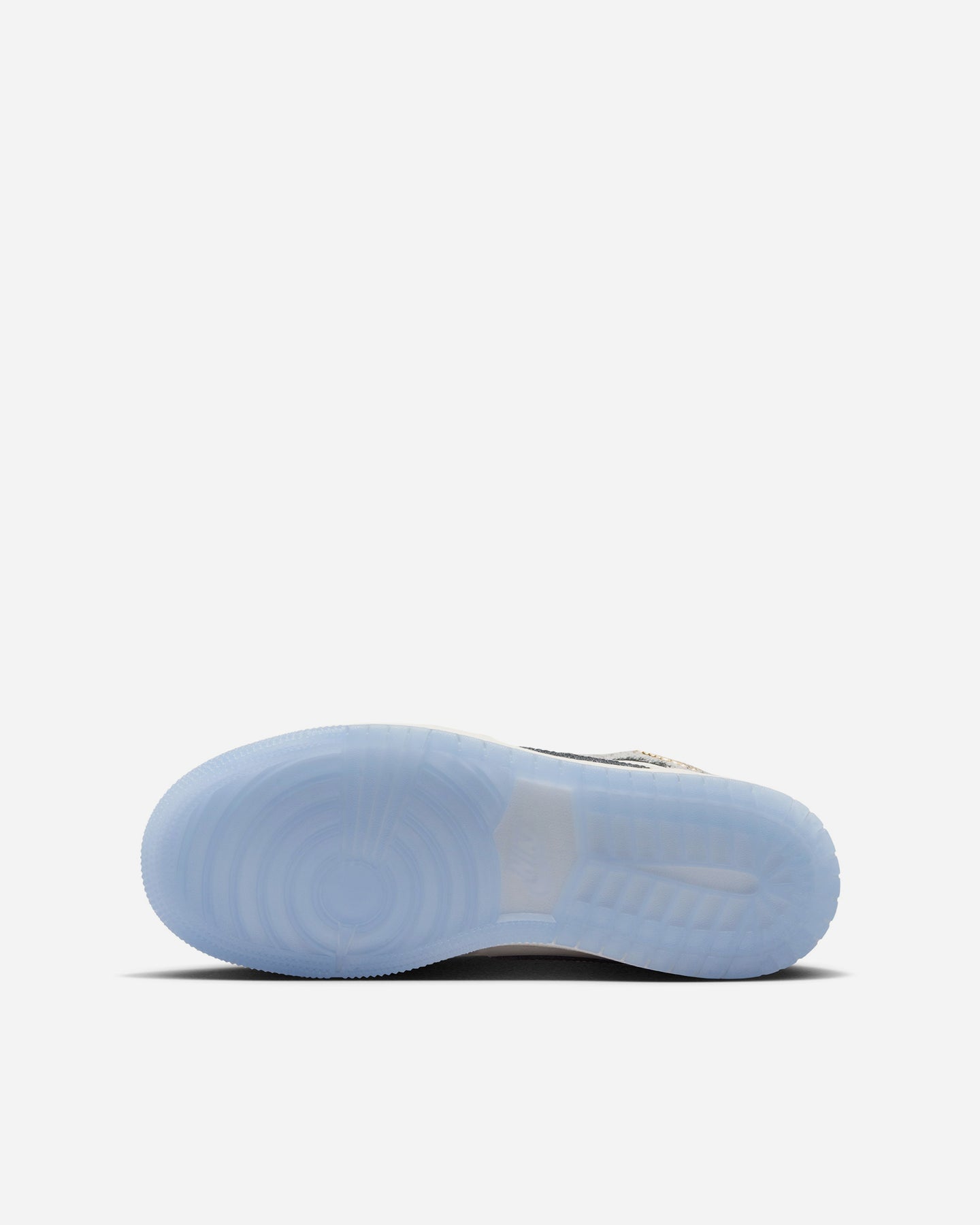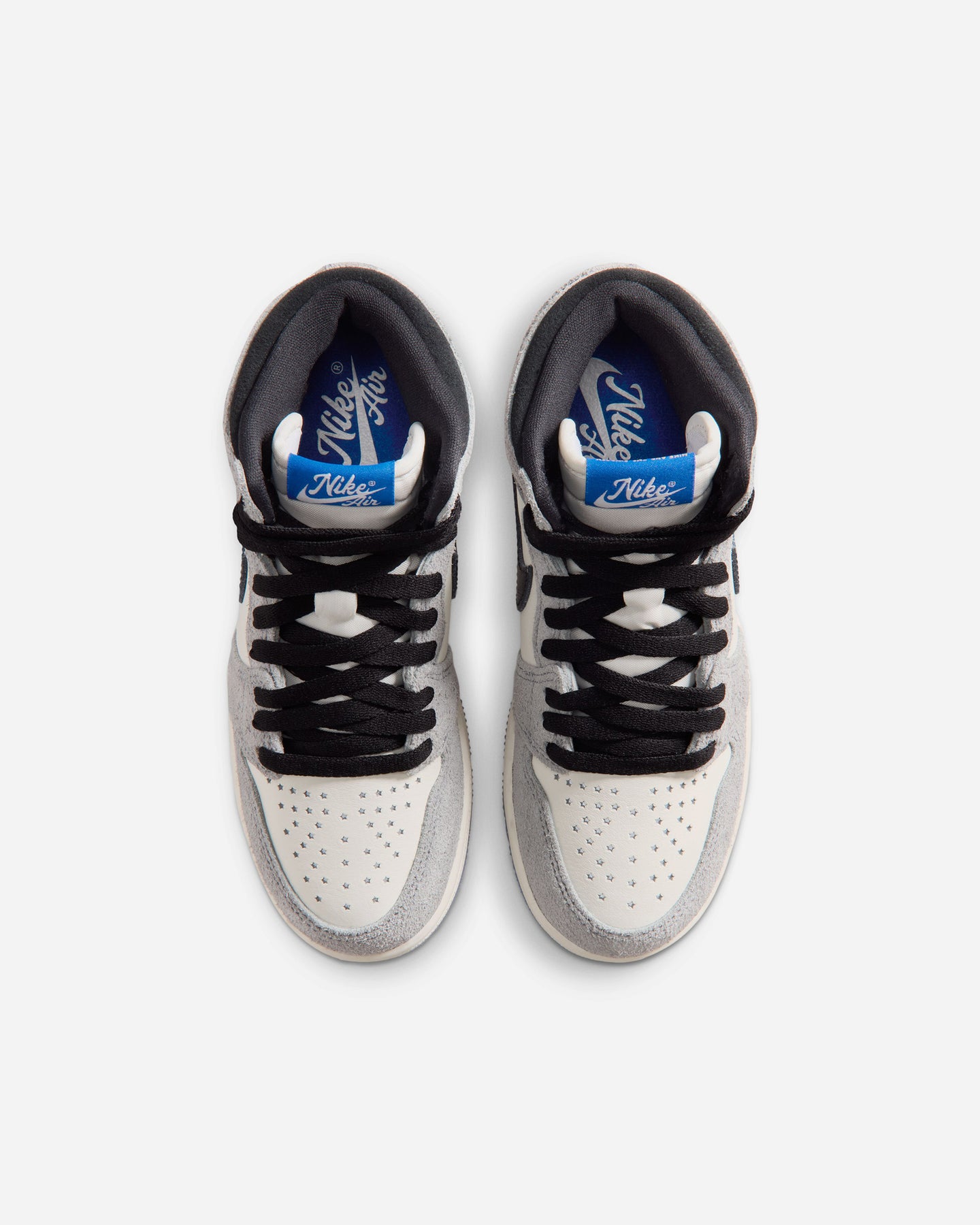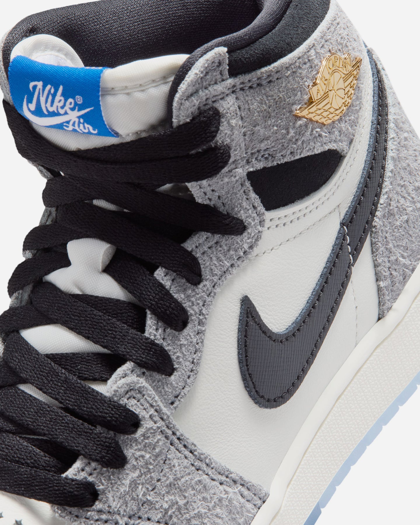 クラシックなスニーカーを語る上で、AIR JORDAN 1は象徴的な存在です。本モデルでは、その完成されたシルエットを軸に、星形のパーフォレーションやメタリックシルバーのアンダーレイを組み合わせ、足元に確かな個性を添えています。足首部分に配されたメタリックゴールドのロゴが、全体を引き締めるアクセントとして機能します。