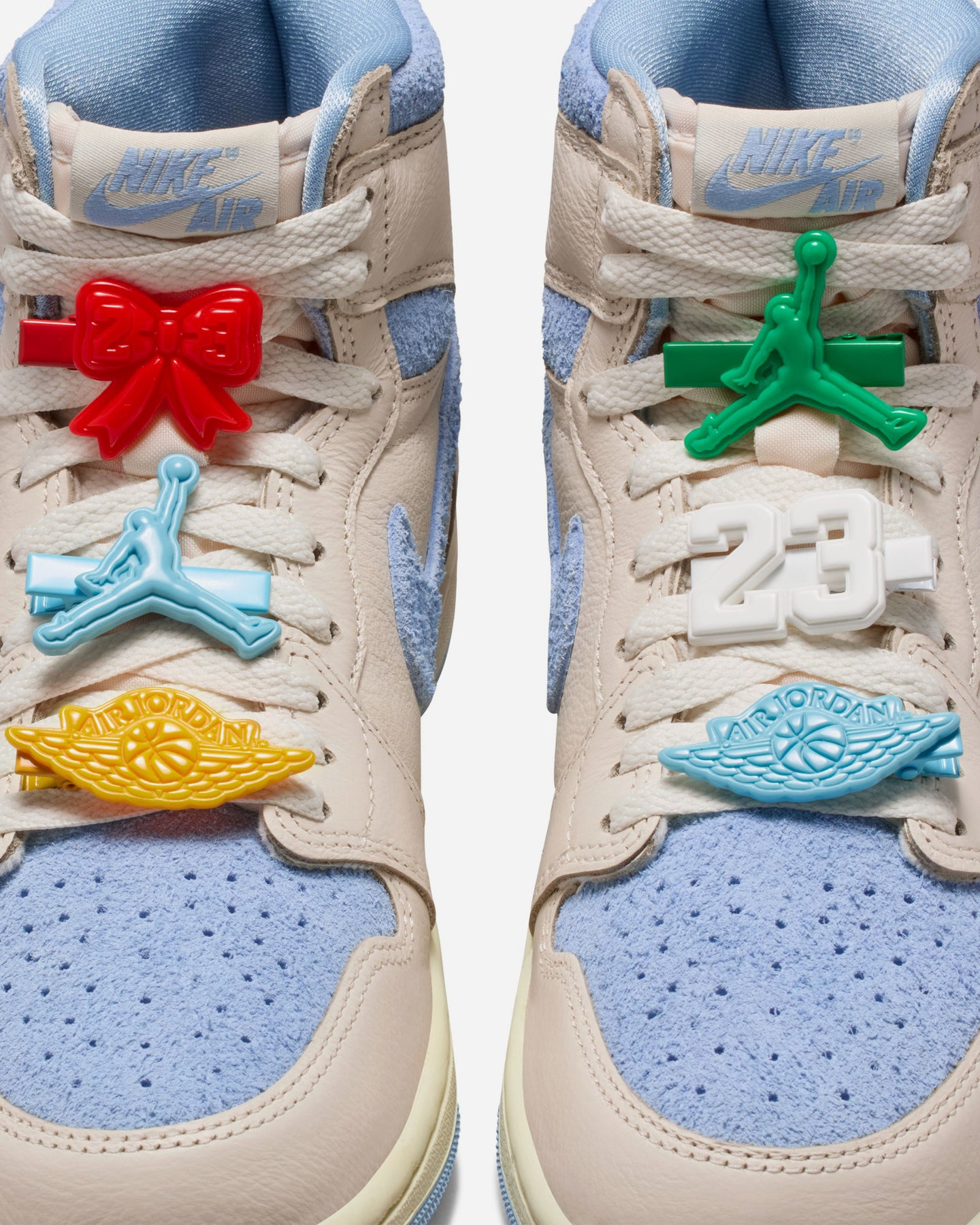 アッパーには上質なレザーとスエードを重ね、質感のコントラストを丁寧に構築。ペールアイボリーをベースに、サイキックブルーがやわらかな奥行きを添える。ココナッツミルクのミッドソールが全体を穏やかにまとめ、付属のバレッタがさりげないアクセントとして機能する。