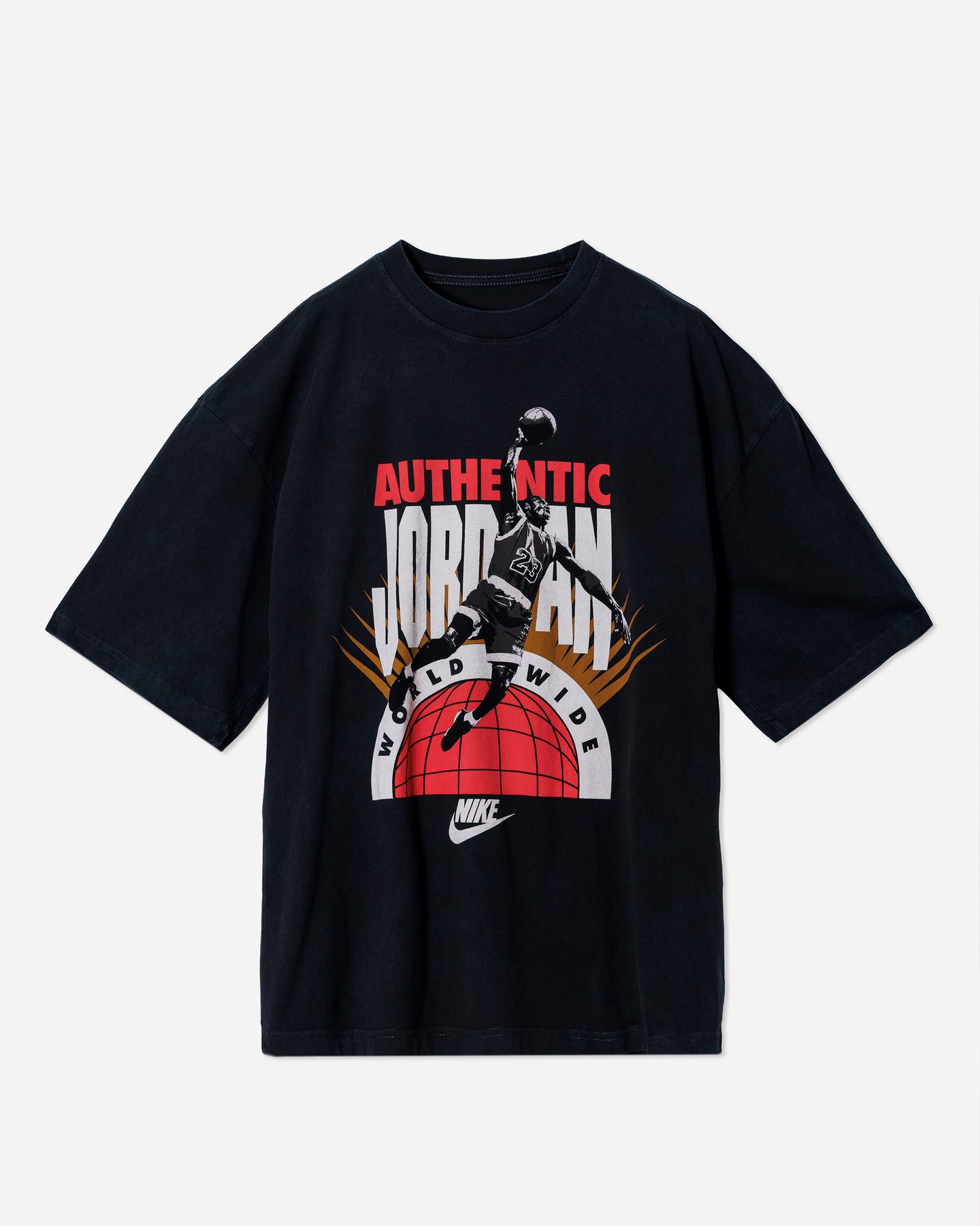 フロントに配されたレトロムード漂うグラフィックは、Jordanらしいヘリテージを感じさせつつ、現代的なストリートスタイルにも自然にフィット。ルーズフィットが抜け感を演出し、デニムからワイドパンツまで幅広いボトムスと好相性です。