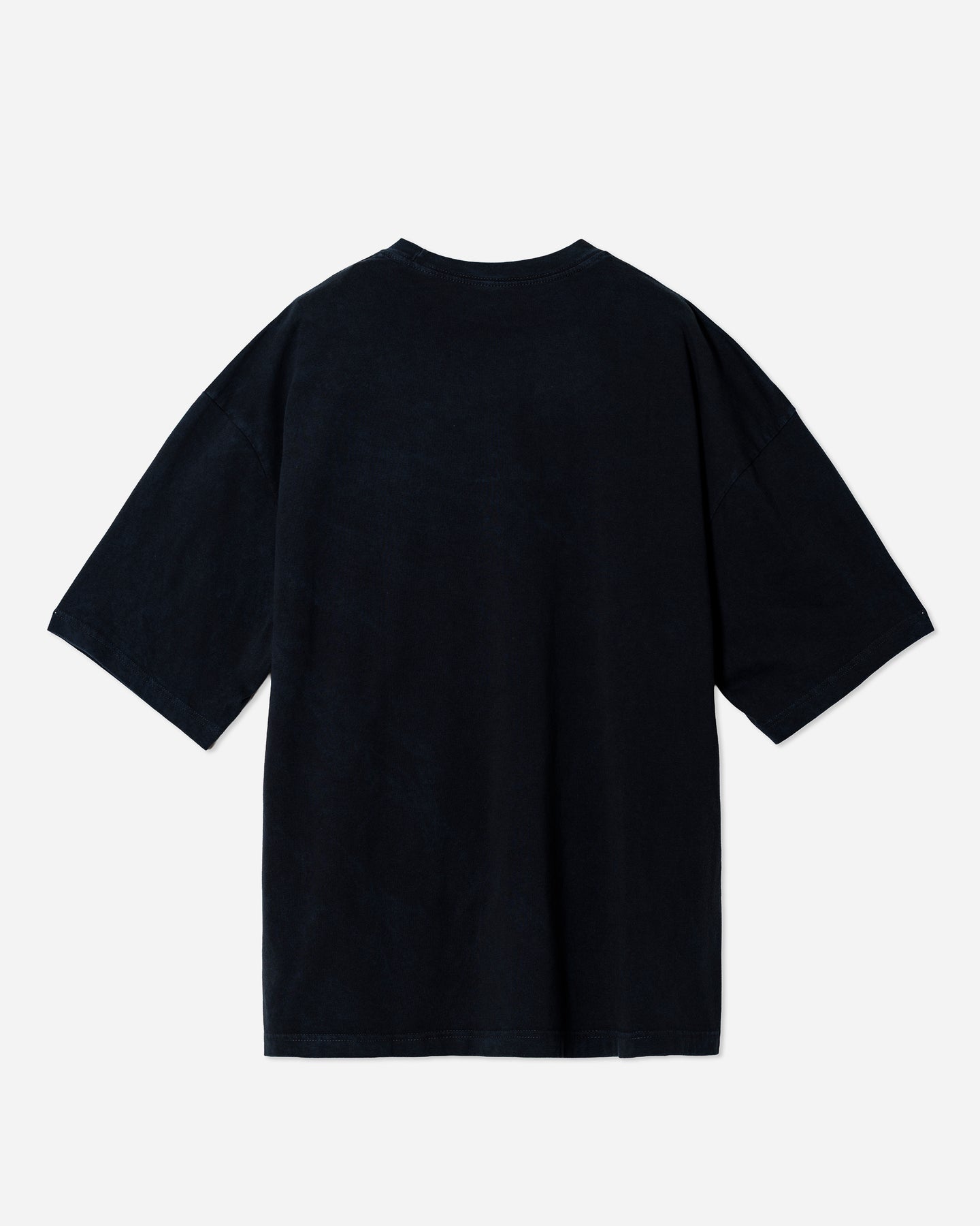 厚手のコットン素材を使用した、オーバーサイズシルエットのショートスリーブクルー。しっかりとした生地感とタフな作りが特徴で、一枚でもスタイルが成立する存在感を備えています。