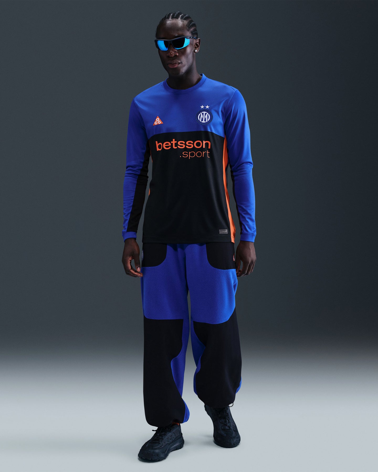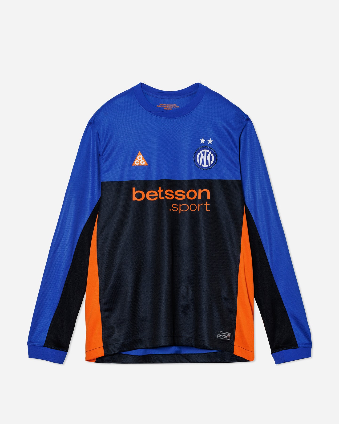 フットボールクラブの象徴を、アウトドアの文脈へと置き換えたNIKE ACGのレプリカシャツ。インテル・ミラノのスピリットを、アルプスの環境を想定した機能性とともに表現しています。