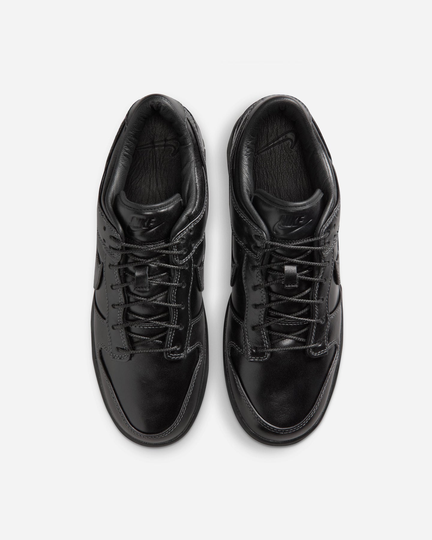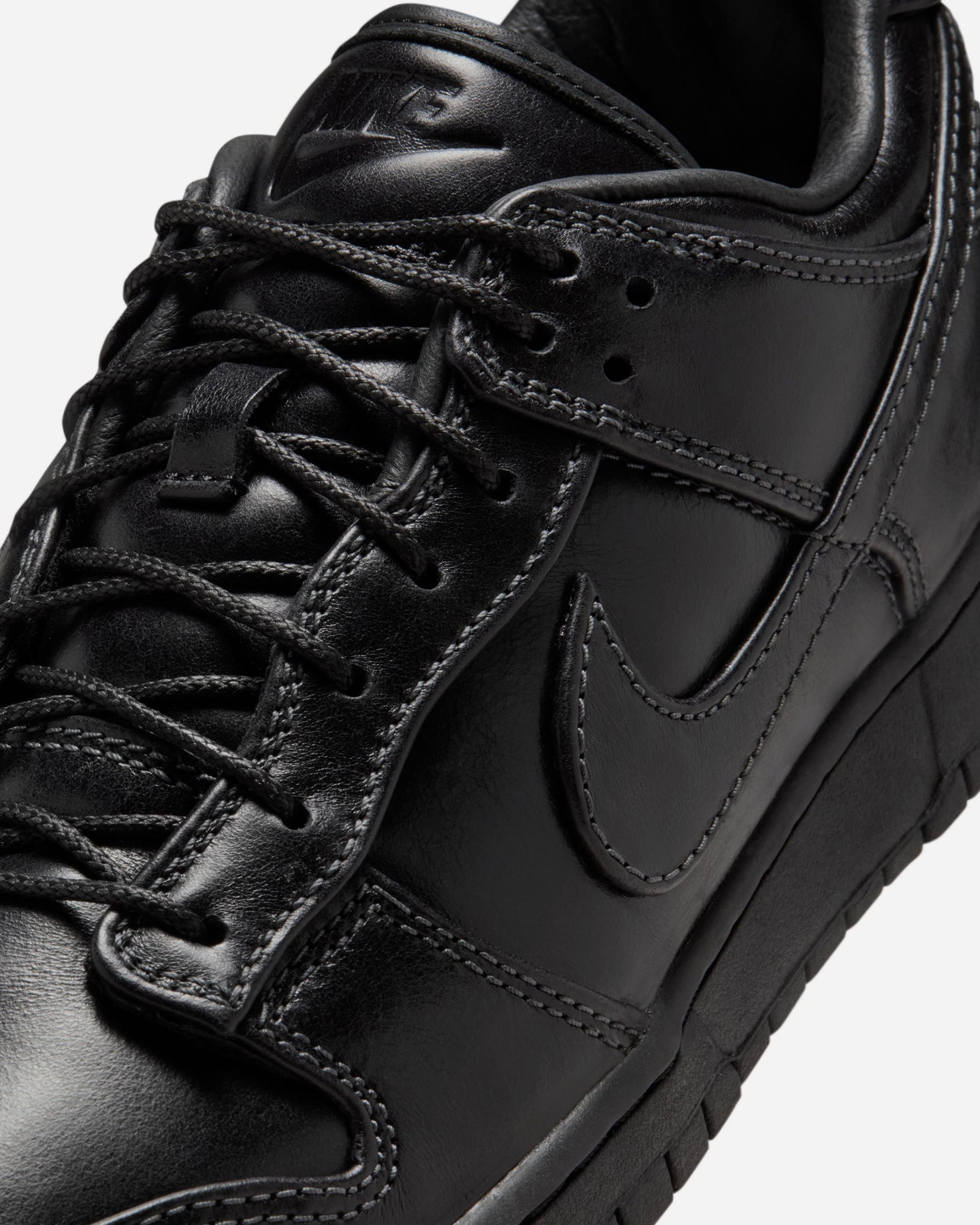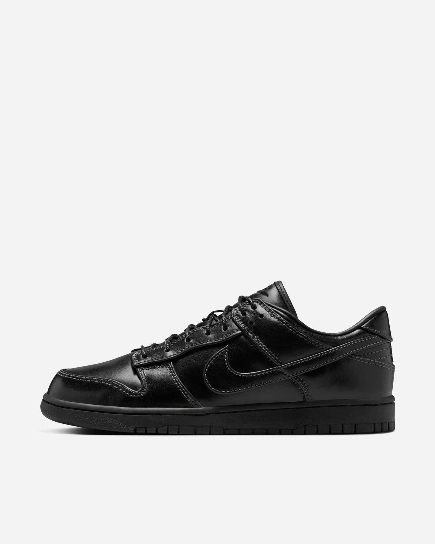時代を超えて支持され続けるダンクの魅力を、プレミアムな素材使いで引き立てた一足。アッパーはオールレザーで構成され、足元に確かな重厚感と上質さをもたらします。カラーは深みのあるブラックで統一し、シンプルでありながら洗練された佇まいに仕上げています。