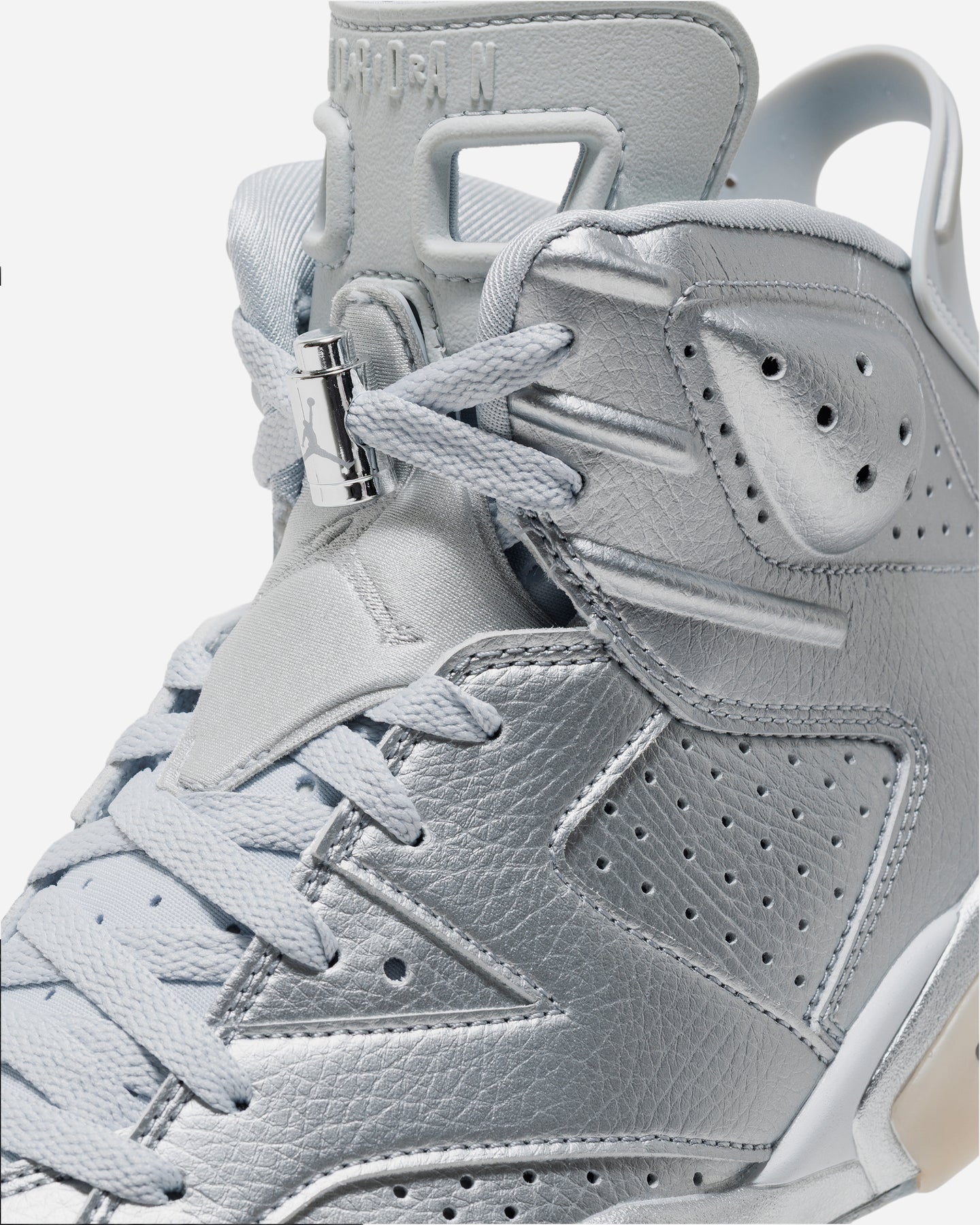 AJ6 RETRO PSGは、パリ・サンジェルマンとJordan Brandのパートナーシップから生まれた特別なモデル。メタリックシルバーで統一されたアッパーは、スムースレザーと合成素材を組み合わせ、都会的で洗練された印象に仕上げています。AJ6の象徴であるシャープなシルエットやヒールのプルタブ、透明感のあるアウトソールなど、クラシックなディテールを継承しつつ、PSGエッセンスが控えめに香る上質な佇まいが魅力。エアクッショニングが安定した履き心地を提供し、スタイルと快適性を兼ね備えた一足です。ストリートからラグジュアリーまで幅広くマッチする、特別なAJ6コラボレーション。