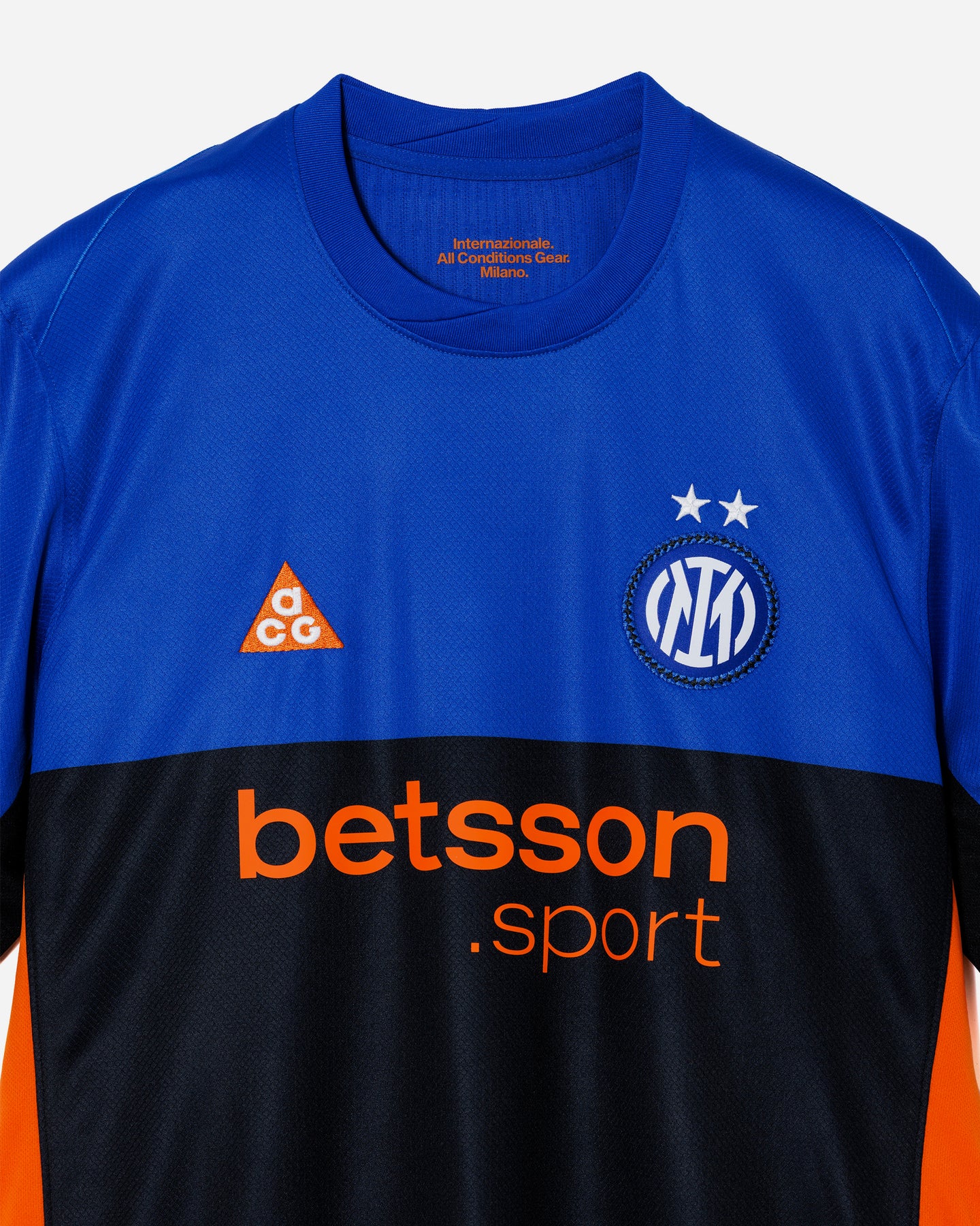 フットボールクラブの象徴を、アウトドアの文脈へと接続したNIKE ACGのレプリカジャージ。インテル・ミラノをフィールドの外へと連れ出し、山岳環境を想定した視点で再解釈しています。