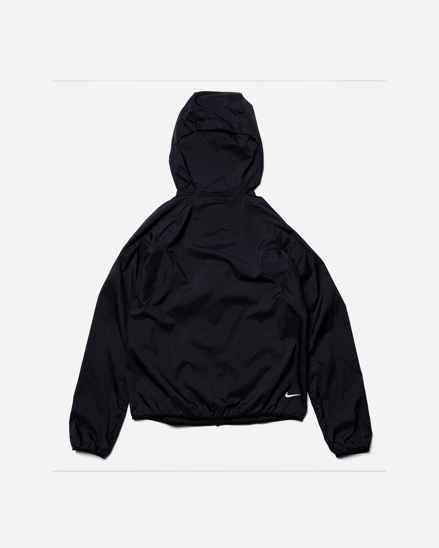 日が差してきたら、本体をポケットに収納してコンパクトに持ち運び可能です。フードのバンジーコードでフィット感を調整し、雨風を軽減。