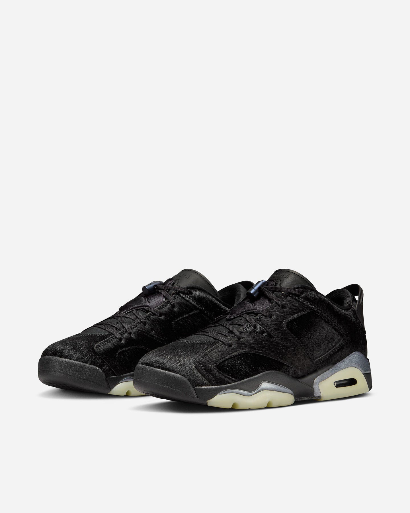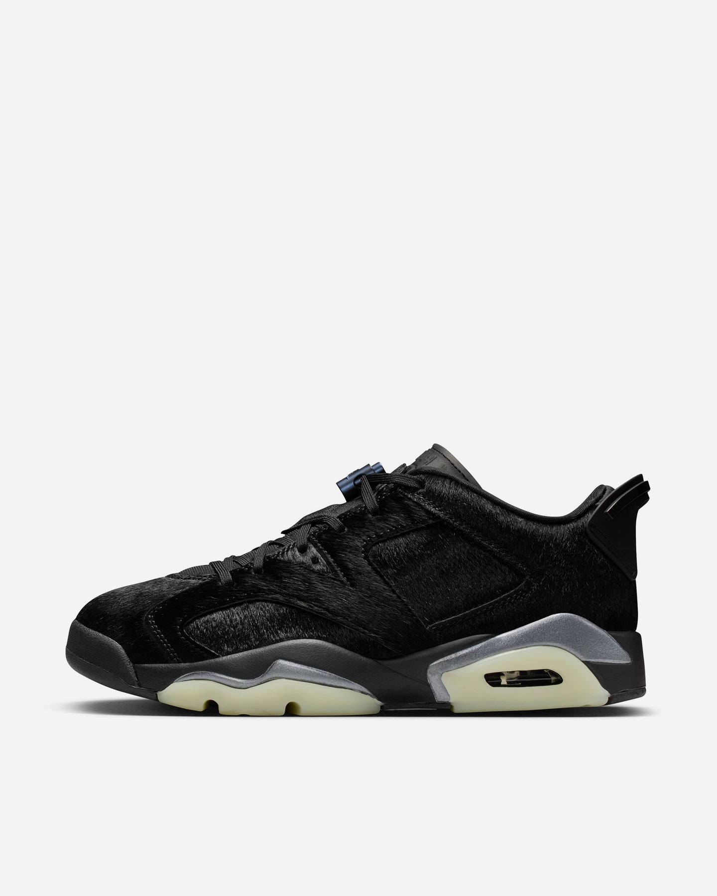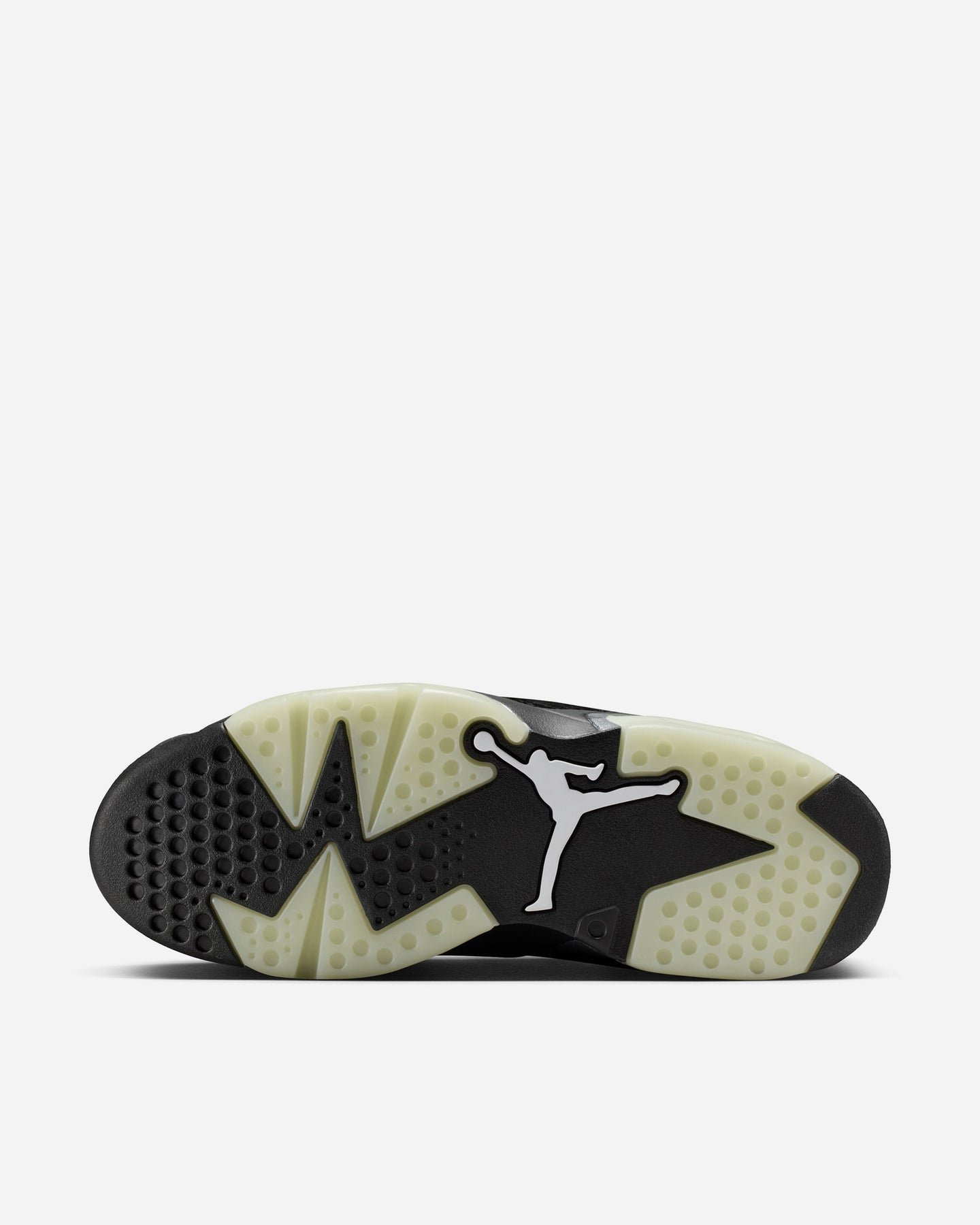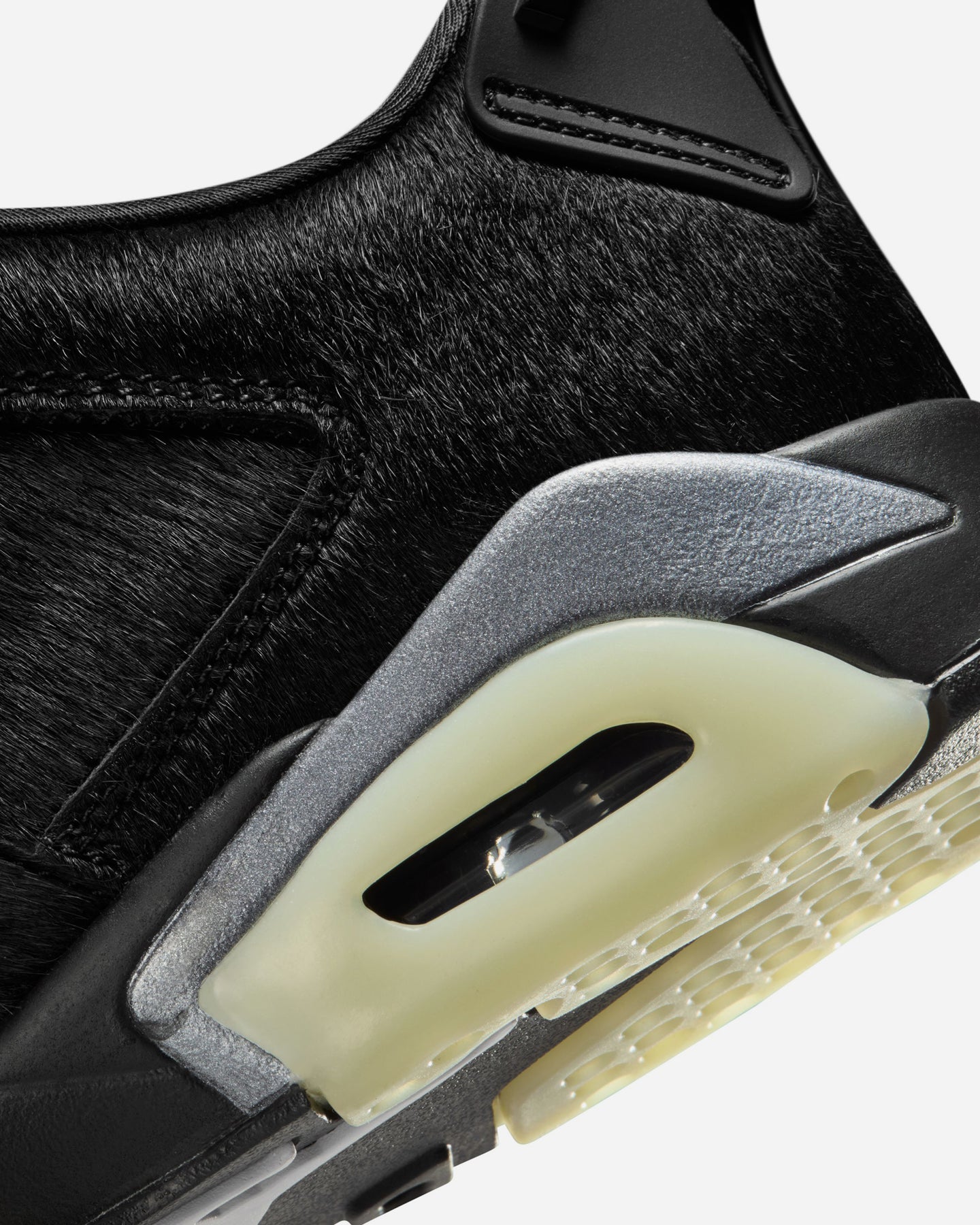 ブラックを基調に、上質なレザーとテキスタイルを組み合わせたアッパーが、洗練された存在感を演出します。オーバーレイやビジブルAir、シューレースロックといったAJ6を象徴するディテールも健在。