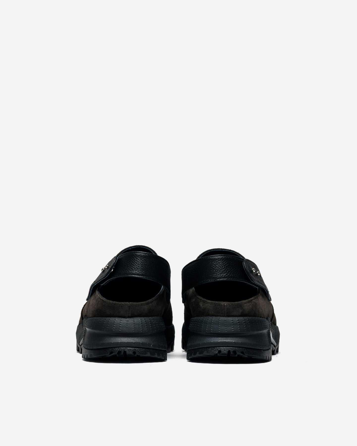ヒールストラップによりフィット感の調整が可能。クロッグのリラックスした履き心地と、歩行時の安定性を両立しています。