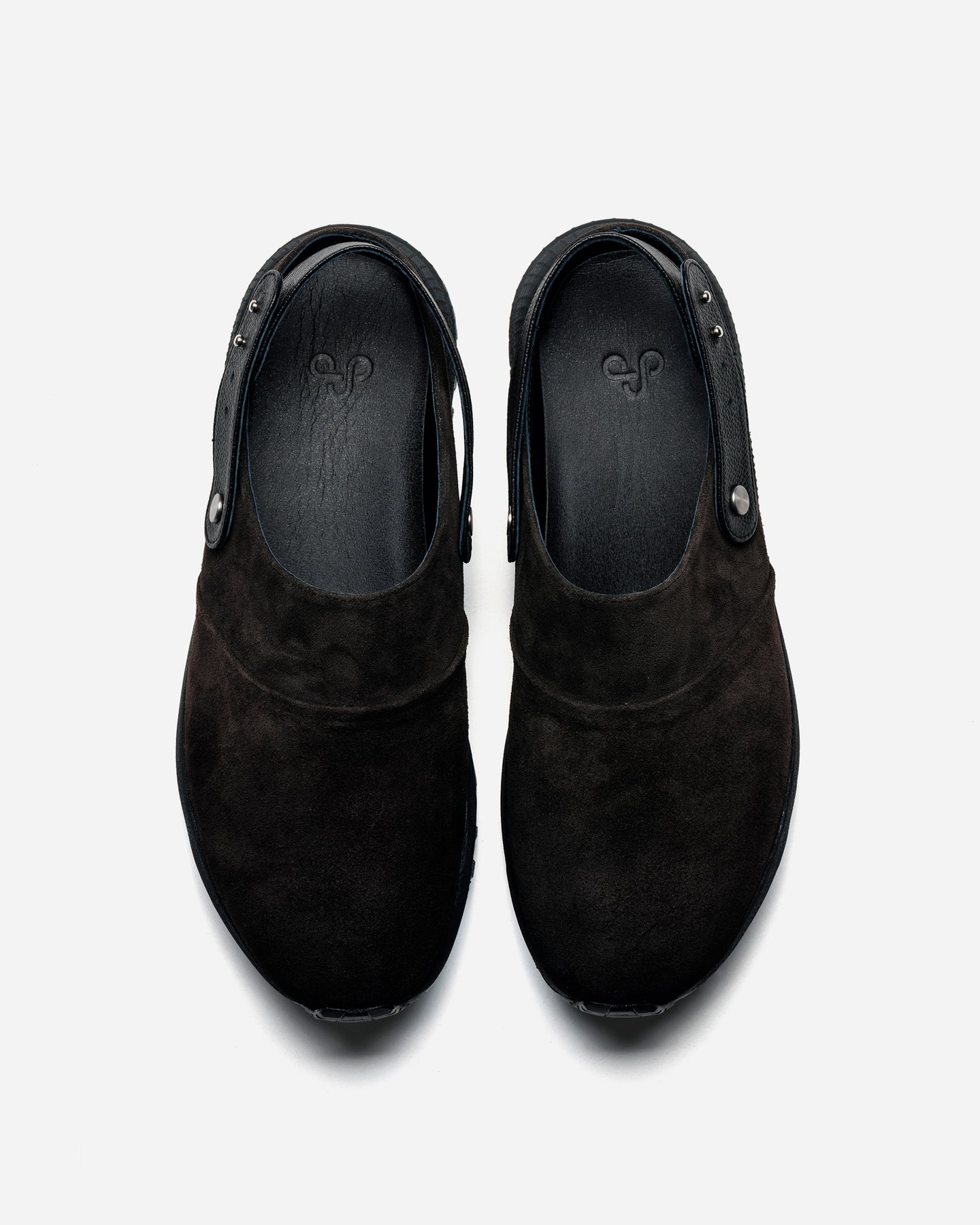 彫刻家・李禹煥(Lee Ufan)が描く「点」と「線」。存在と不在の境界という思想から着想した、グラデーション加工のスエードクロッグサンダル。