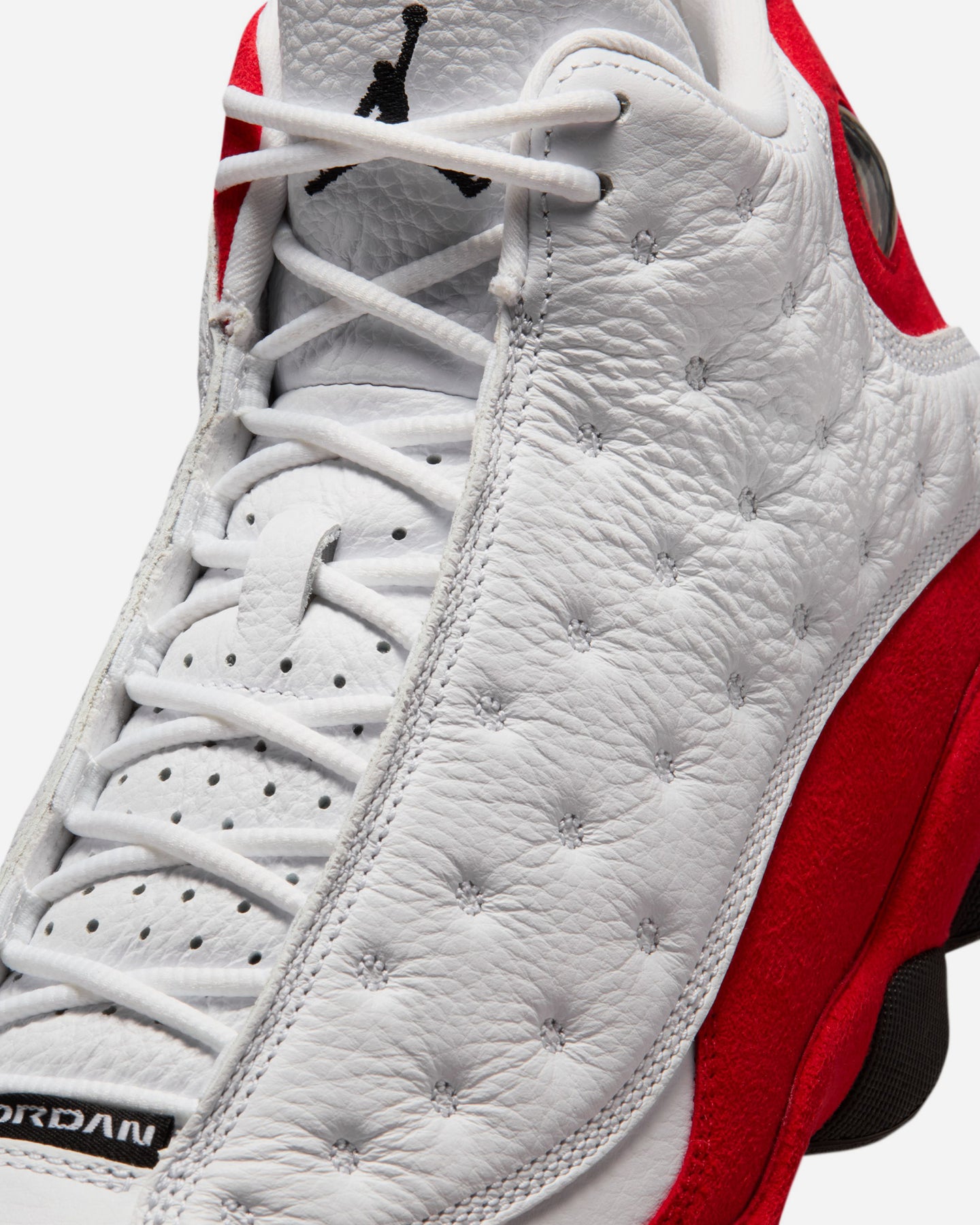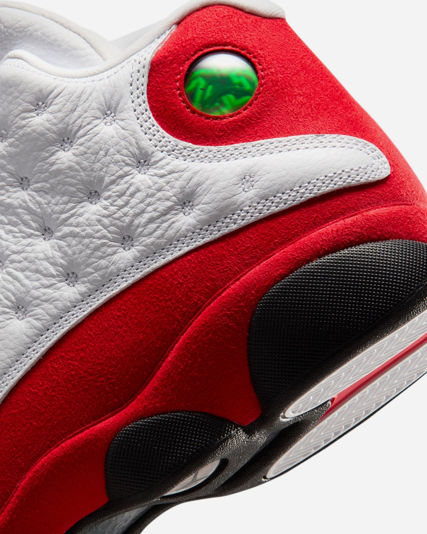 キルトのオーバーレイ、立体的なミッドソール、ホログラフィックアイなど、特徴的なディテールをすべて継承した。このエディションでは、上質なレザーとテキスタイルの組み合わせに、ホワイトとユニバーシティレッドを定番のバランスで配置し、勝利のための一足を完成させている。