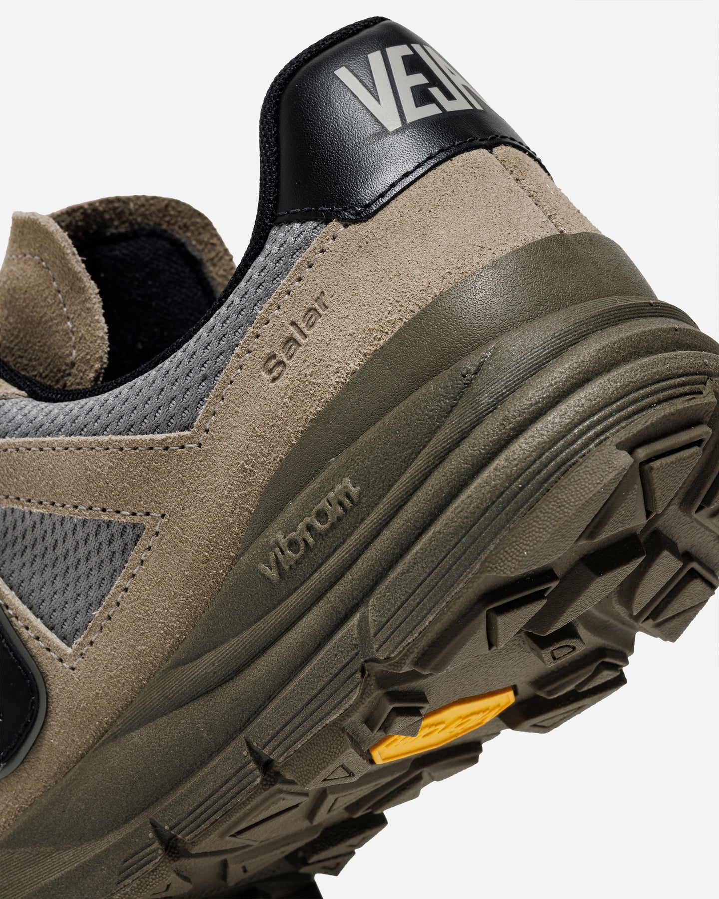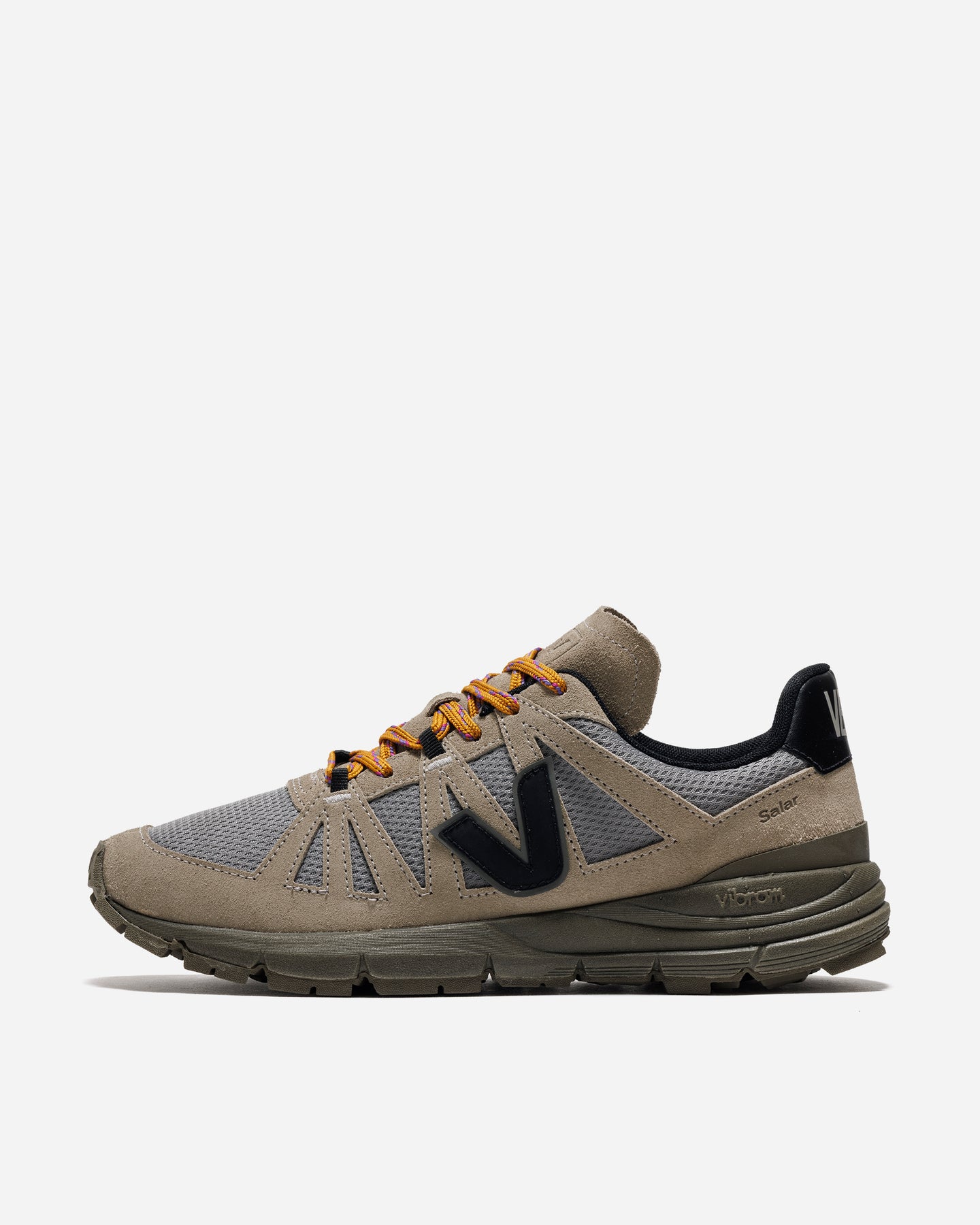 アウトドアの要素を取り入れた構造的なデザインが特徴の「SALAR」。異なる素材を重ねたアッパーが立体感を生み、機能性と都会的な印象を両立しています。