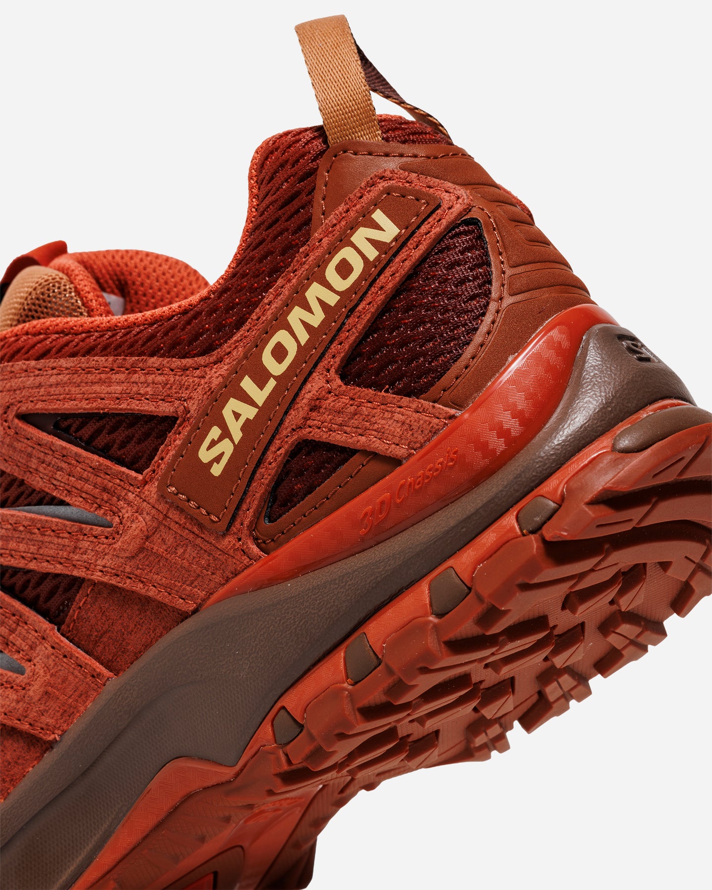 トレイルランニングの歴史の中で培われてきたXA PRO 3Dの設計思想を背景に、乾燥した砂漠の風景から着想を得たRED ASHESカラー。PECAN BROWNとCHILIの色調が、岩肌や赤土を思わせる自然の色彩を足元に落とし込みます。