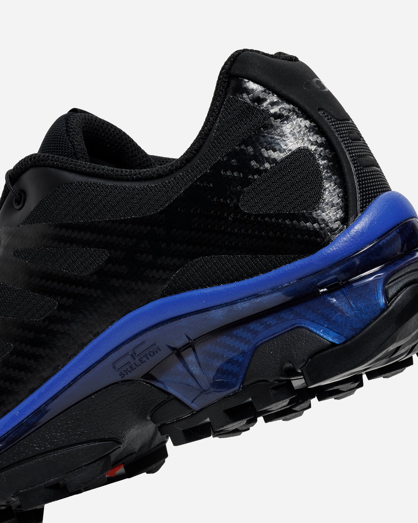 BLACKを基調としたアッパーは、レイヤー構造による立体感とマットな質感が特徴。補強パーツや切り替えは視覚的な装飾ではなく、環境への適応という必然から導かれたものです。抑制された配色が、XTシリーズ特有の構造美を際立たせます。